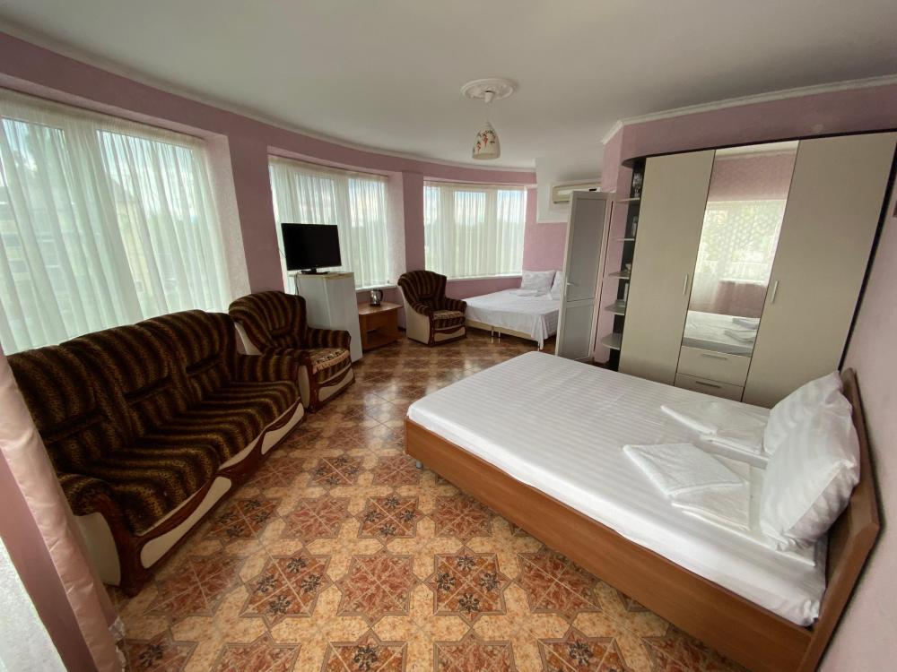 Мы рады предложить Вам двухкомнатный номер с лаконичным дизайном на третьем этаже гостевого дома, позволяющий комфортно разместиться четверым гостям. В номере есть все необходимое для полноценного отдыха. Двухкомнатный номер общей площадью 24 м² отвечает современным требованиям комфорта и отдыха, оборудован кондиционером в каждой комнате, кроватями, выходом в интернет (WI-FI), телевизором с плоским экраном. В вашем распоряжении ванная комната c туалетом в коридоре третьего этажа, рядом с номером. А так же просторная зона отдыха, в холле третьего этажа, оборудованна мягкой мебелью и телевизором.