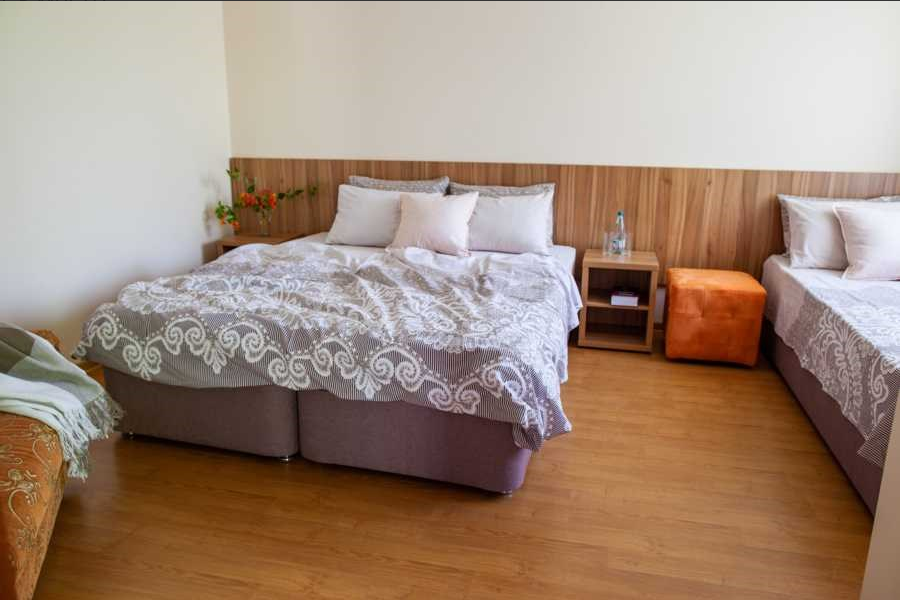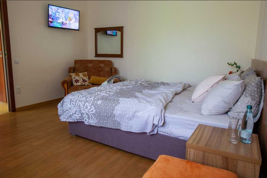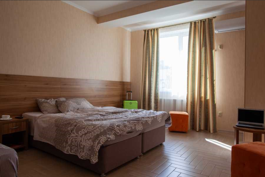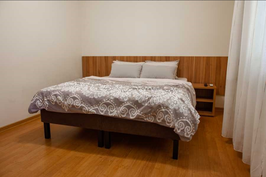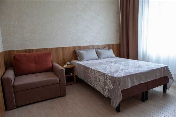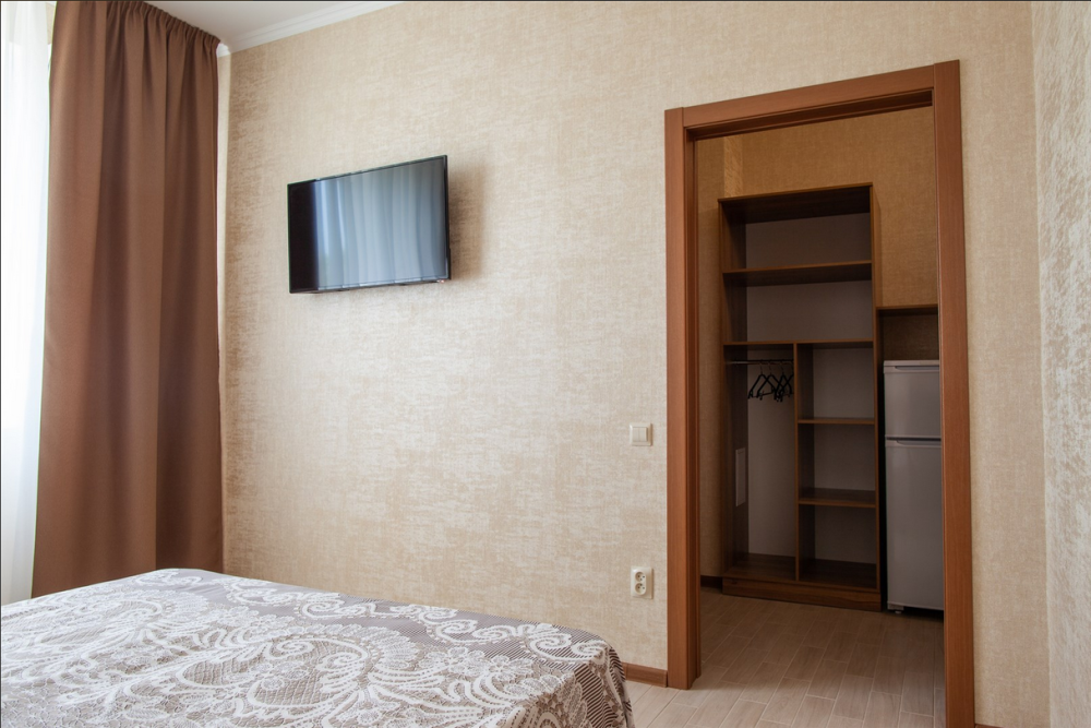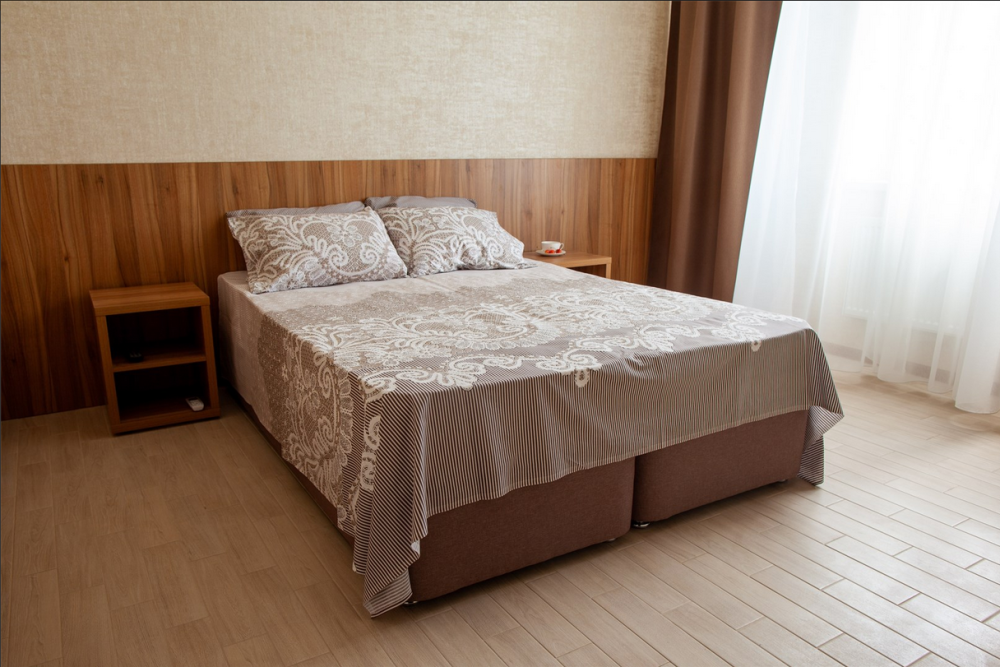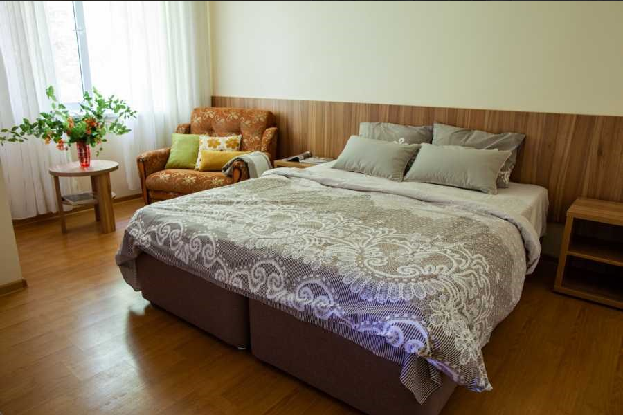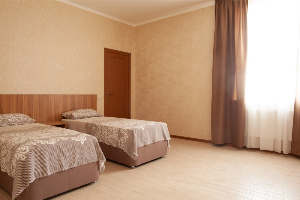 Стандарт двухместный - оптимальный вариант для проживания, подойдет как для проживания двум, так и трем гостям. Для вас предусмотрено все необходимое для комфортного пребывания. - Две односпальные кровати 80х200 (по просьбе с двуспальным топером (160х200) - Кресло-кровать (кровать) – дополнительное место ( за доп.оплату) - Прикроватные тумбочки - Платяной шкаф - Ж/к телевизор с цифровыми каналами - Холодильник - Сплит система - Ванная комната (душ)