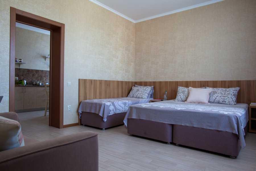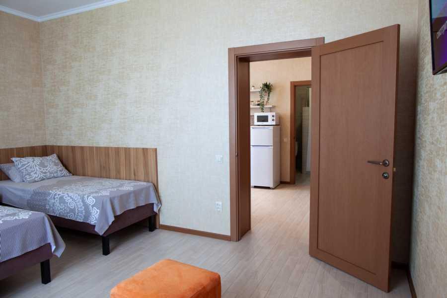 Просторная комната, площадью 36 кв.м., повышенной степени комфортности, в которой гармонично сочетаются спальня и кухня. Подойдет для отдыха семейной пары или пары с детьми, которые уделяют внимание как комфорту, простору номера так и функциональности. Комната расположена на 3 этаже, рассчитан на проживание 2-3-4-х человек. В комнатах, помимо спальных мест, санузел (душевая, раковина, унитаз) имеются сплит-система, холодильник, телевизор, мебель. На кухне есть все необходимое для приготовления еды.