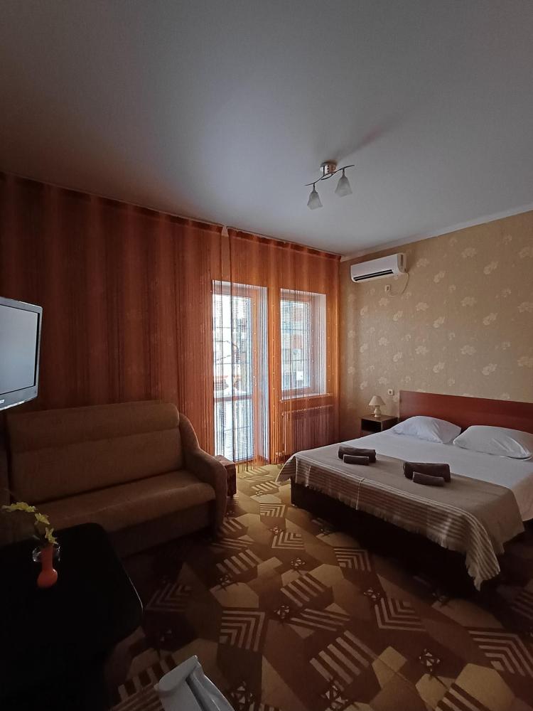 Комфортабельная комната с мини-кухней и балконом расположен на 3 этаже. Расчитана на 1-3 чел. Спальные места: двуспальная кровать и диван-кровать. Номер оснащен всем необходимым для комфортного пребывания: телевизор, холодильник, сплит-система, журнальный столик, балкон, москитная сетка. Собственная мини-кухня (посуда, столовые приборы).Для гостей с автомобилем (при наличии места)бесплатная парковка под шлагбаумом. Правила проживания: Размещение животных запрещено. Проведение вечеринок запрещено. Тихие часы (когда нельзя шуметь) 23:00-07:00.