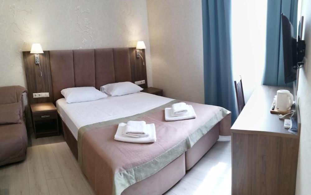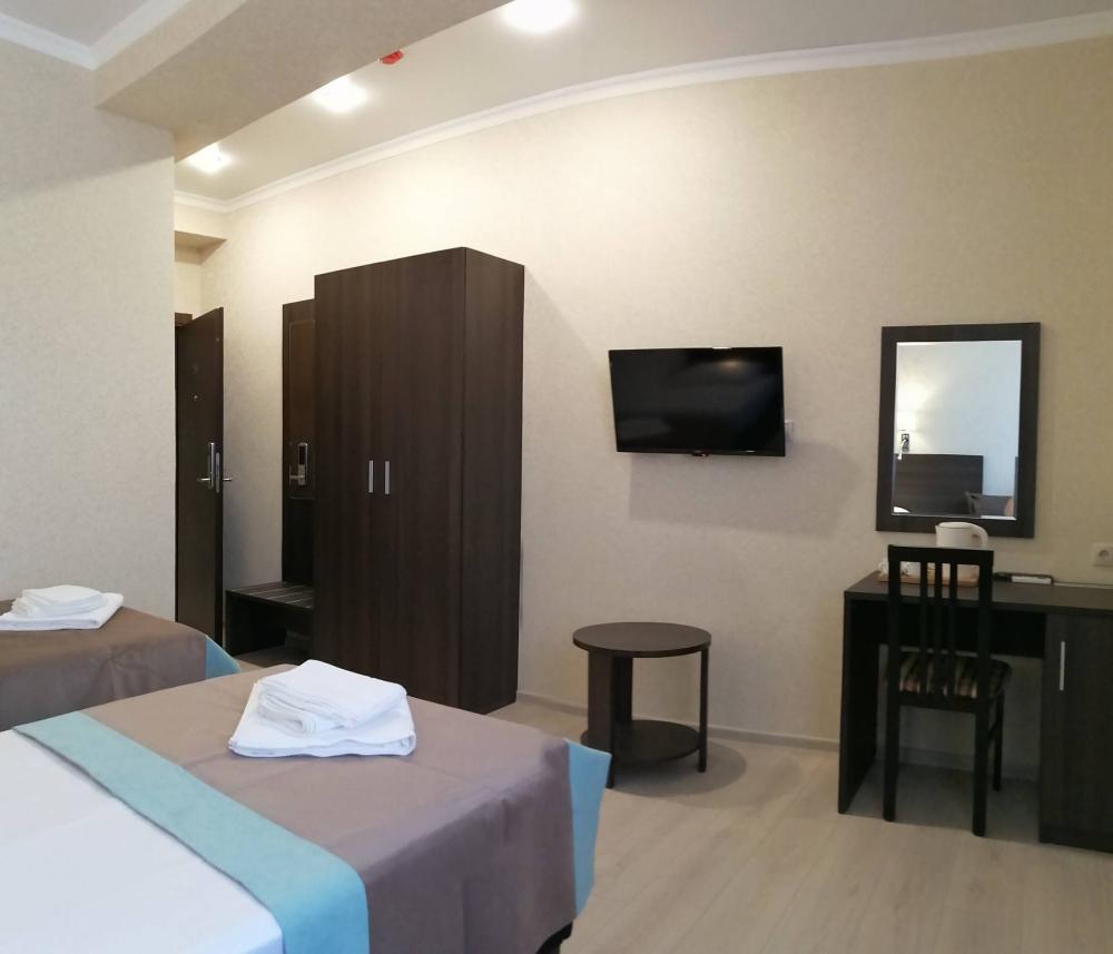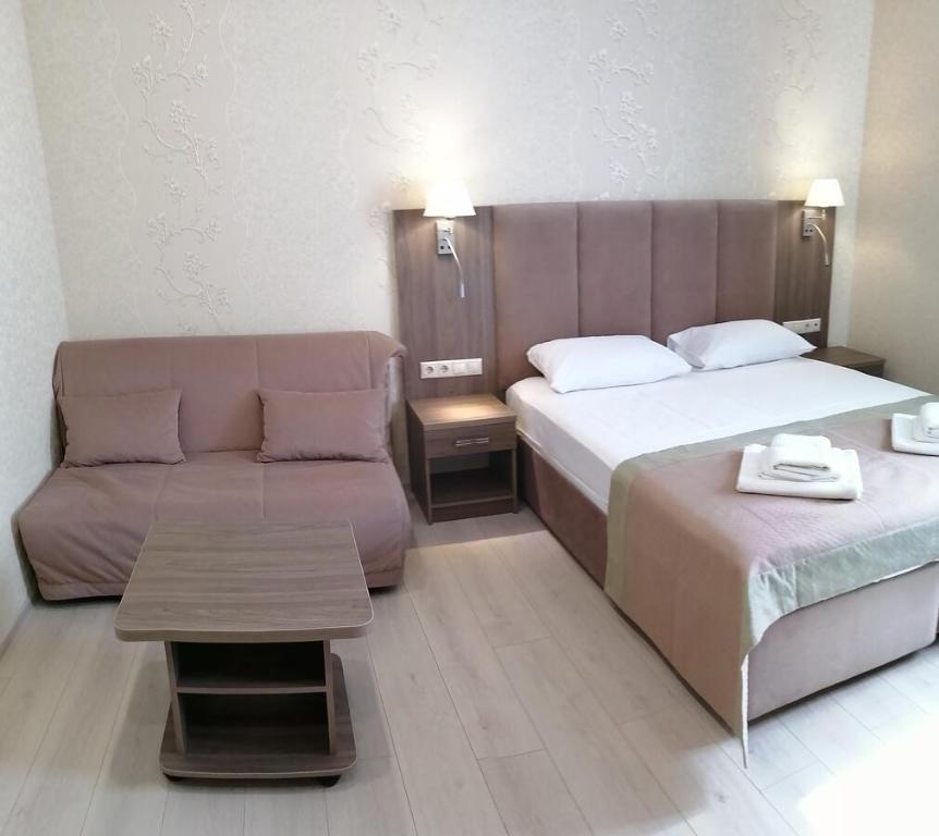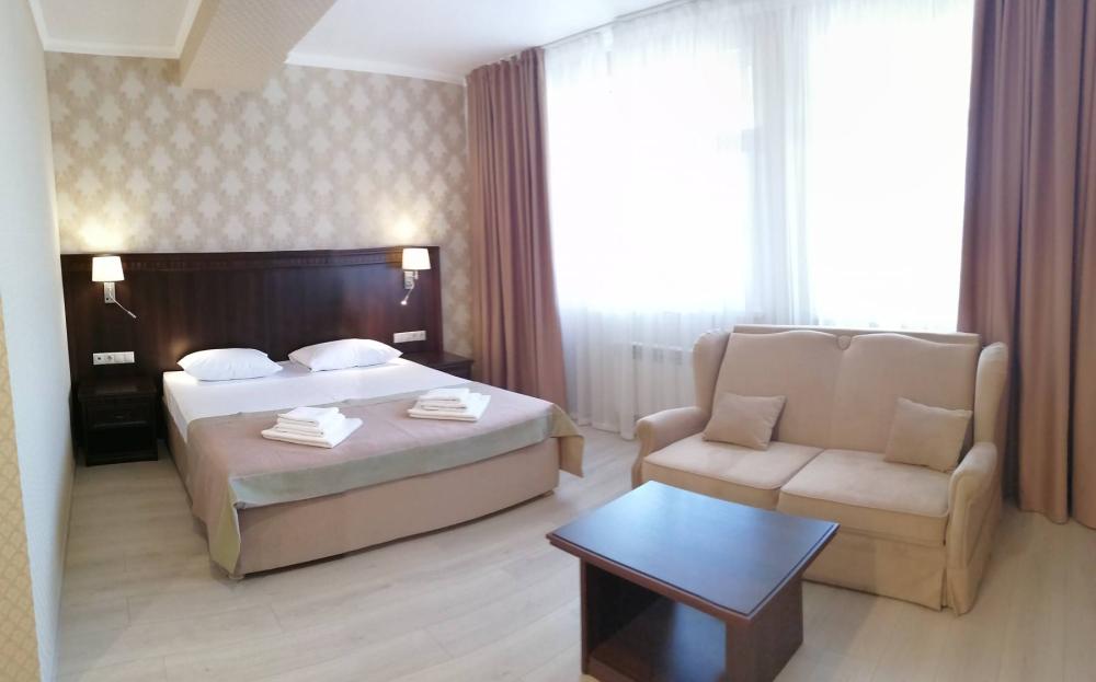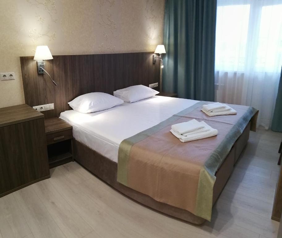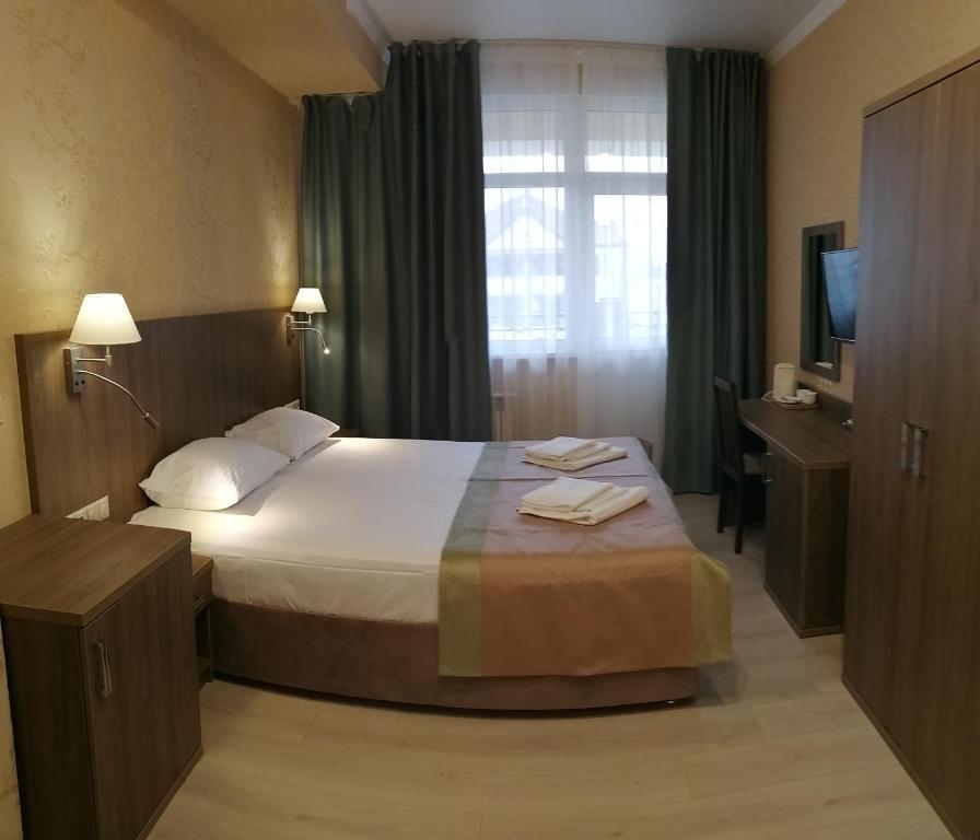 Двухместный номер с одной большой кроватью или двумя односпальными кроватями и односпальным раскладным диваном. В номере есть всё необходимое для комфортного проживания двух или трёх гостей: прихожая, шкаф, стол, стул, прикроватные тумбочки, журнальный столик, зеркало, телевизор, мини-холодильник, кондиционер, сушилка для белья, а также оборудованная ванная комната с душем, зеркалом и феном. Площадь номера 15 – 18 м2.