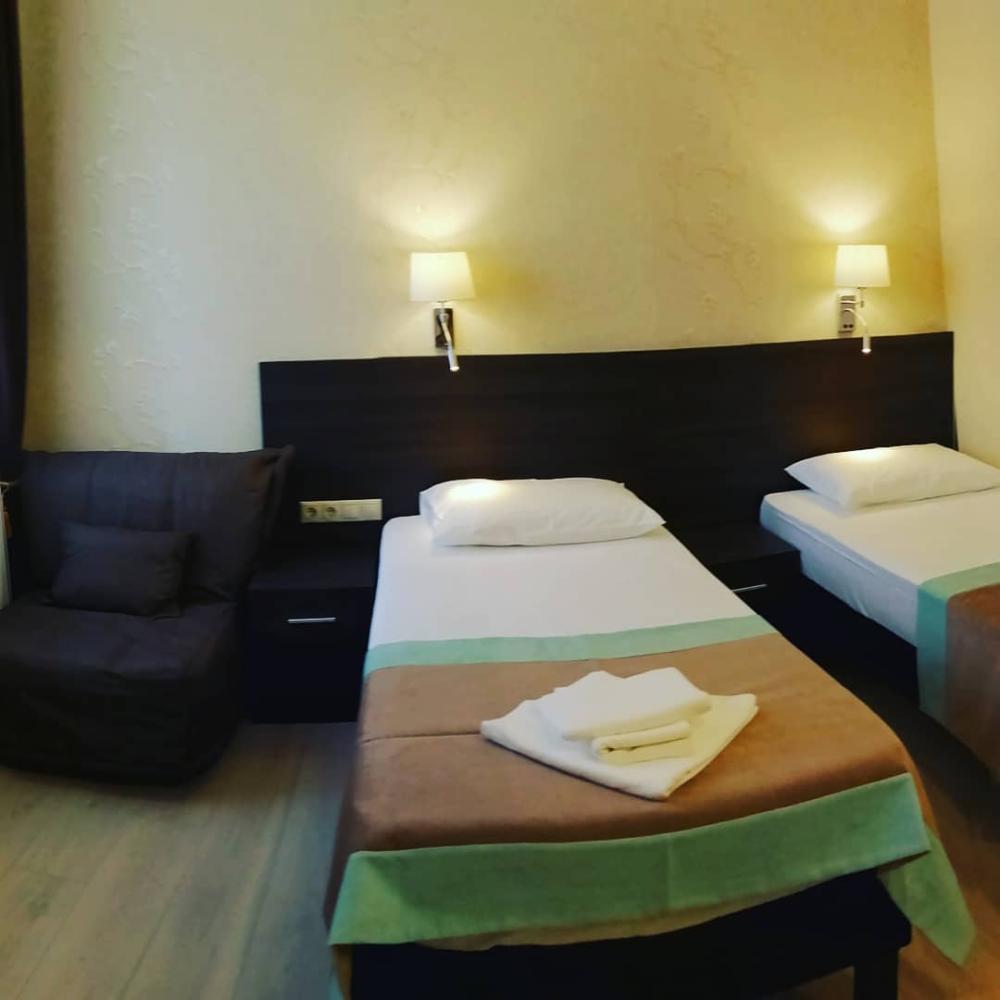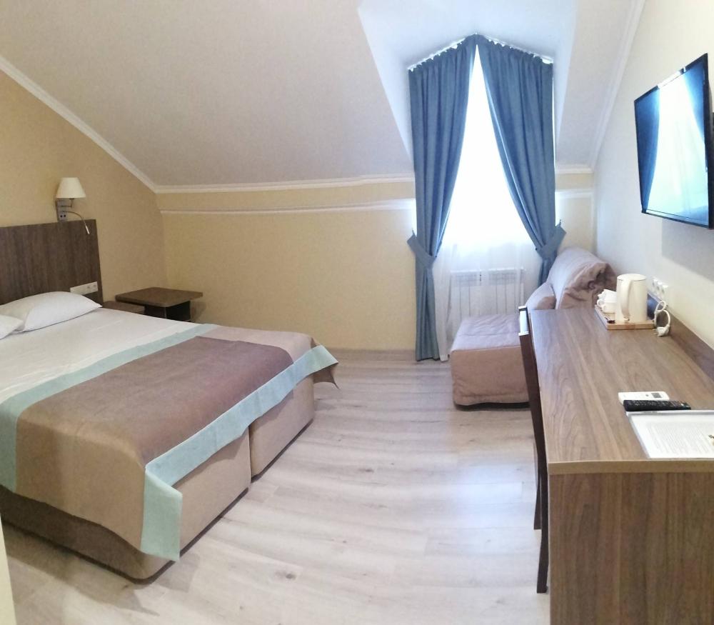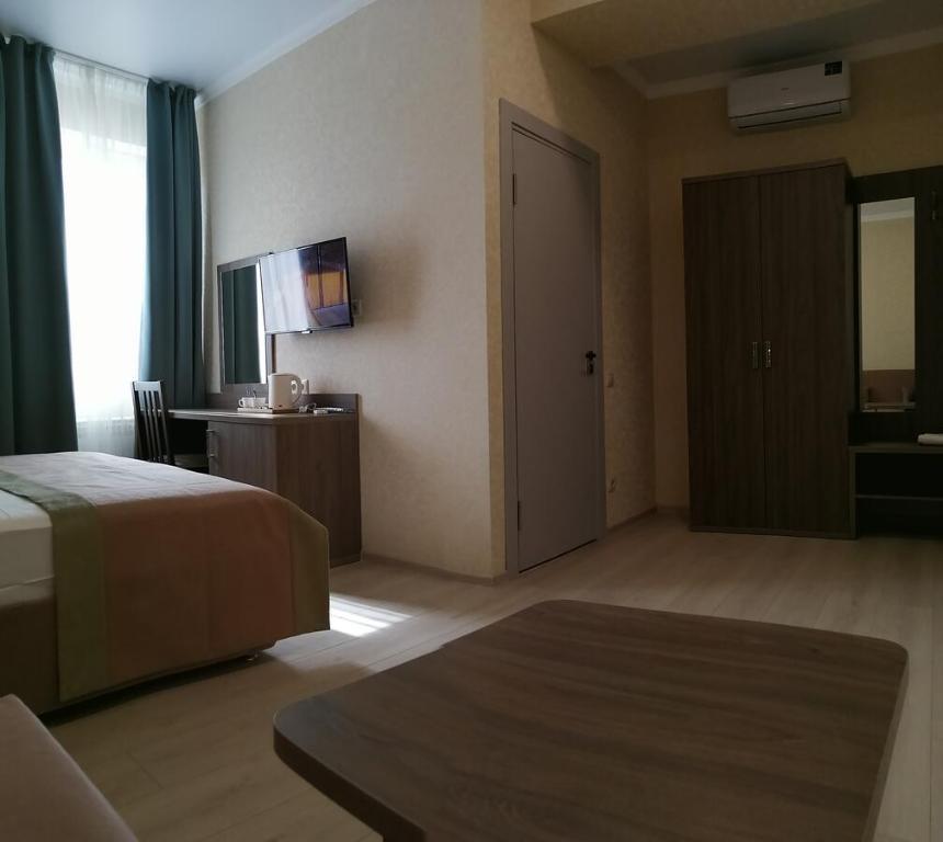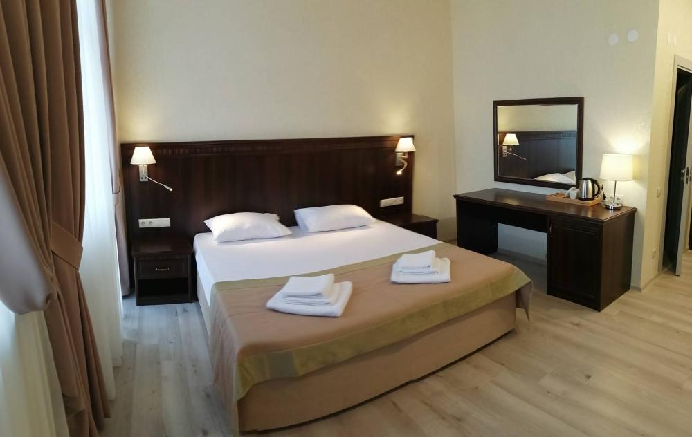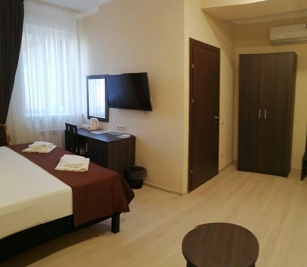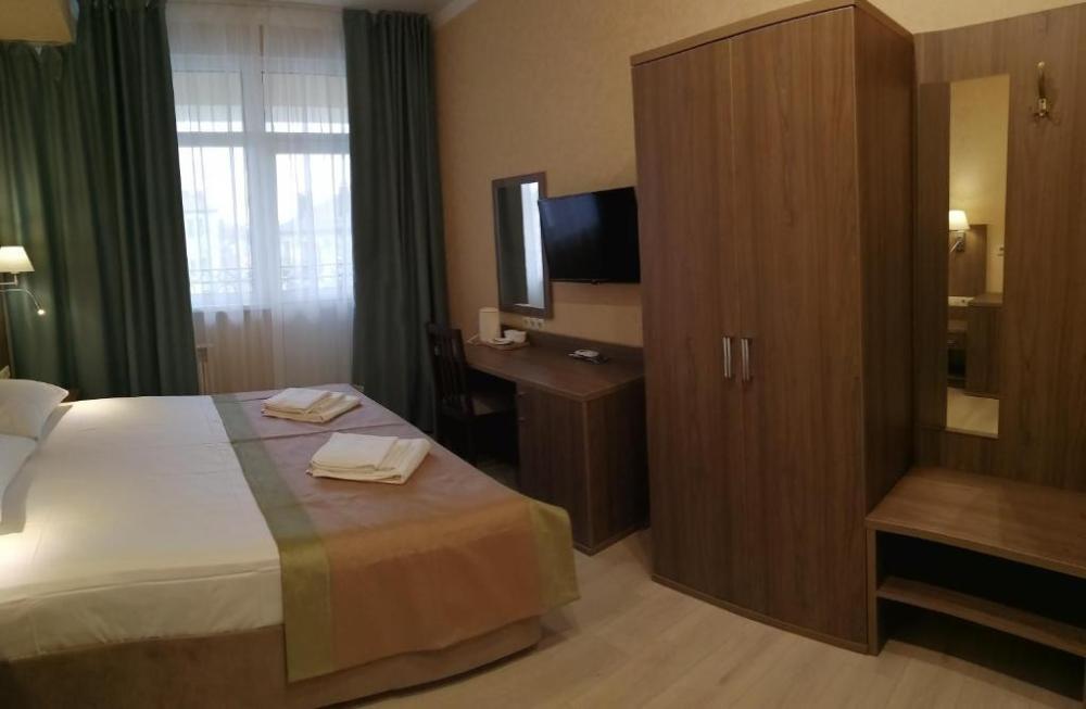 Двухместный номер с одной большой кроватью или двумя односпальными кроватями и односпальным раскладным диваном. В номере есть всё необходимое для комфортного проживания двух или трёх гостей: прихожая, шкаф, стол, стул, прикроватные тумбочки, журнальный столик, зеркало, телевизор, мини-холодильник, кондиционер, сушилка для белья, а также оборудованная ванная комната с душем, зеркалом и феном. Площадь номера 15 – 18 м2.
