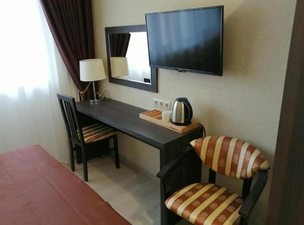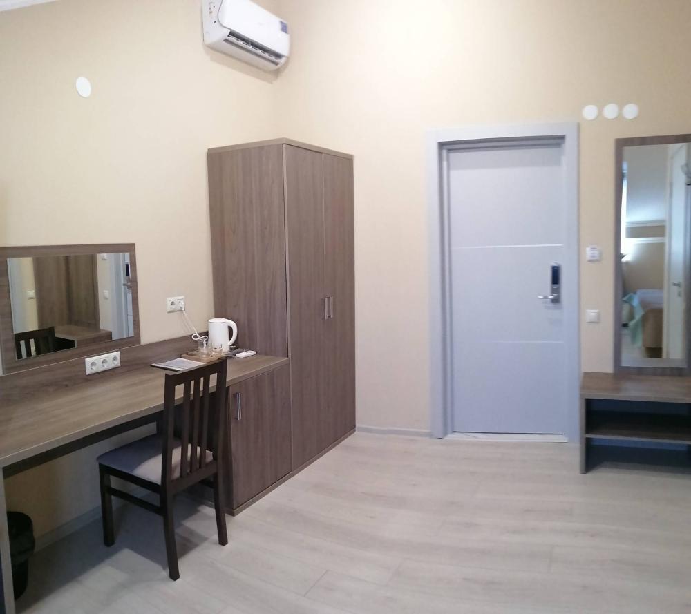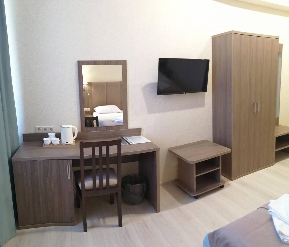 Уютный двухместный номер с одной большой кроватью или двумя односпальными кроватями. В номере есть всё необходимое для комфортного проживания одного или двух гостей: БАЛКОН, прихожая, шкаф, стол, стул, прикроватные тумбочки, журнальный столик, зеркало, телевизор, мини-холодильник, сейф, кондиционер, сушилка для белья, а также оборудованная ванная комната с душем, зеркалом и феном. Площадь номера 14-17 м2.