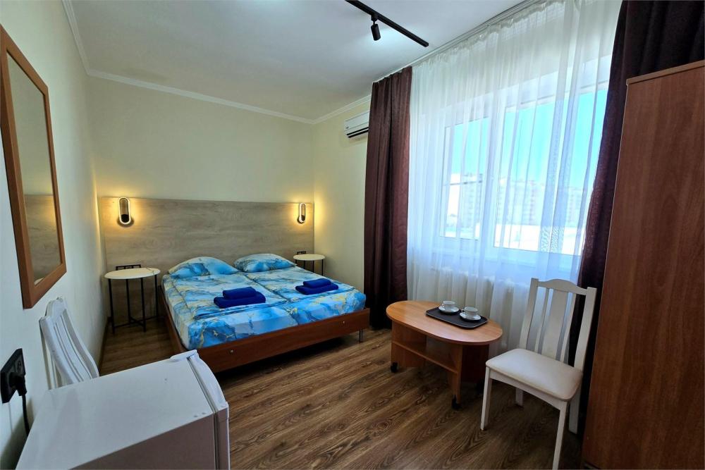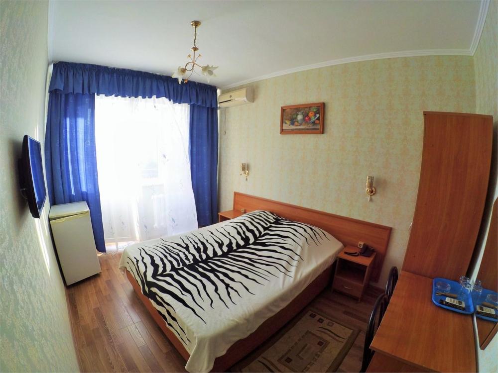 14 кв.м с балконом. В номере: телевизор, холодильник, кондиционер, одна двухспальная кровать, две прикроватные тумбочки, шкаф, туалетный столик, санузел с душем.