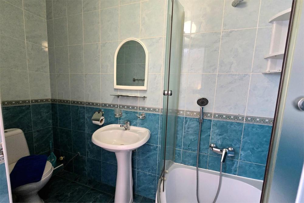 13 кв.м без балкона. В номере: телевизор, холодильник, кондиционер, две односпальные кровати, две прикроватные тумбочки, шкаф, туалетный столик, санузел с душем.