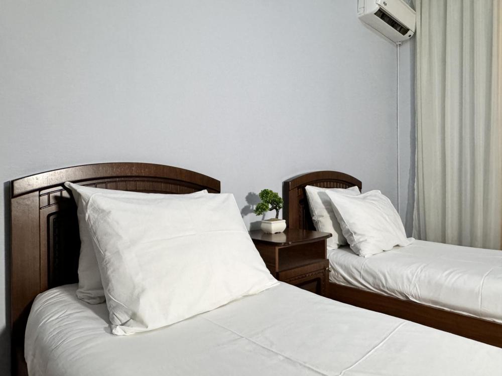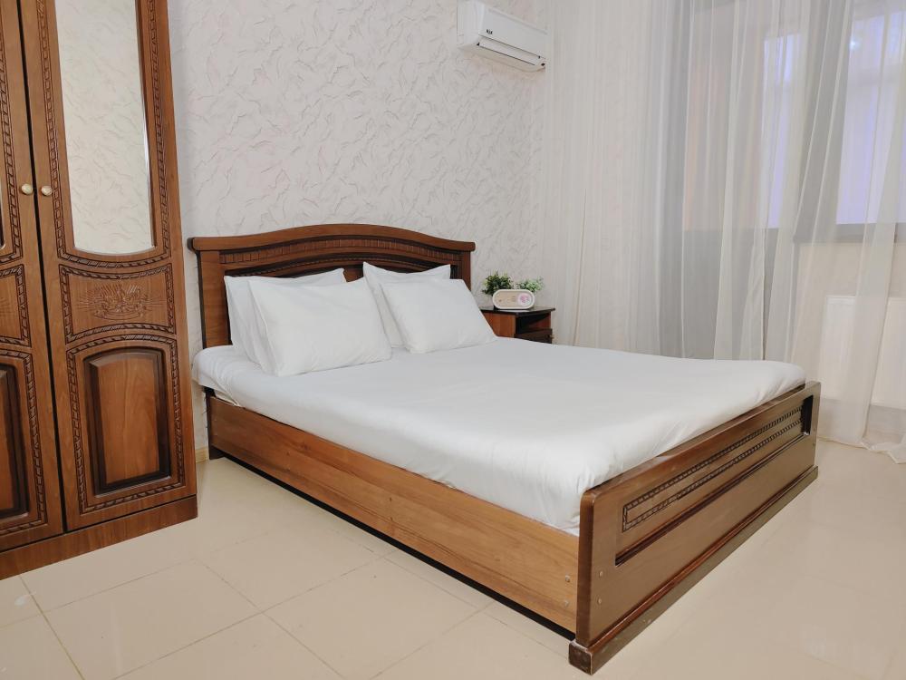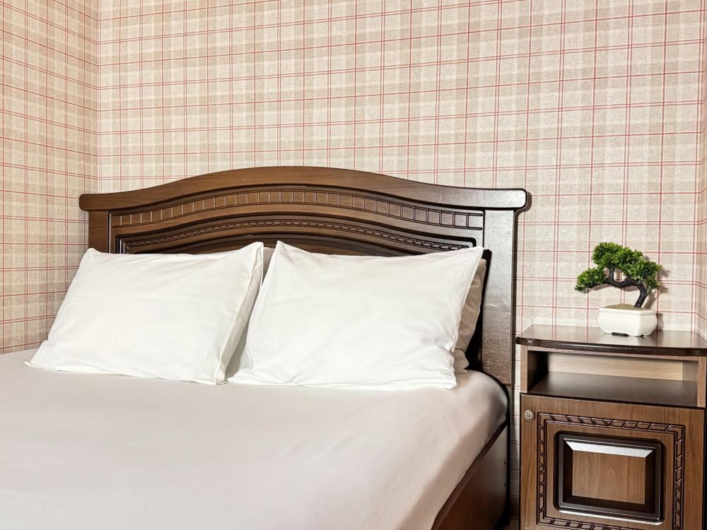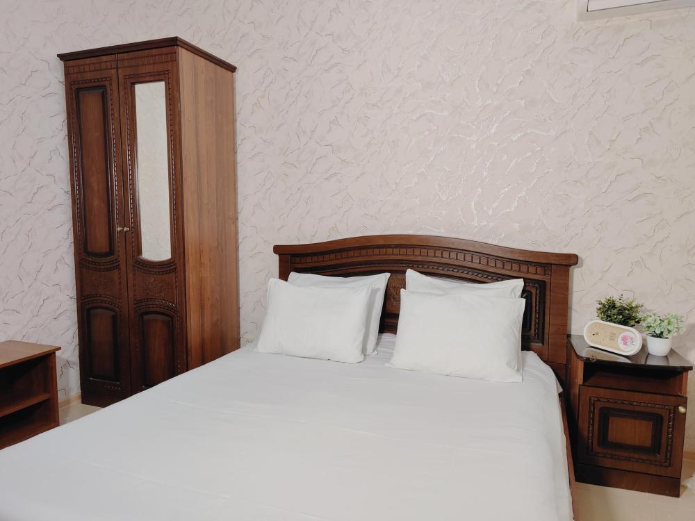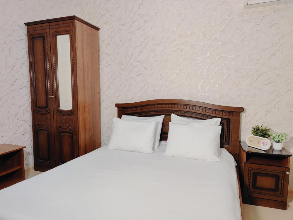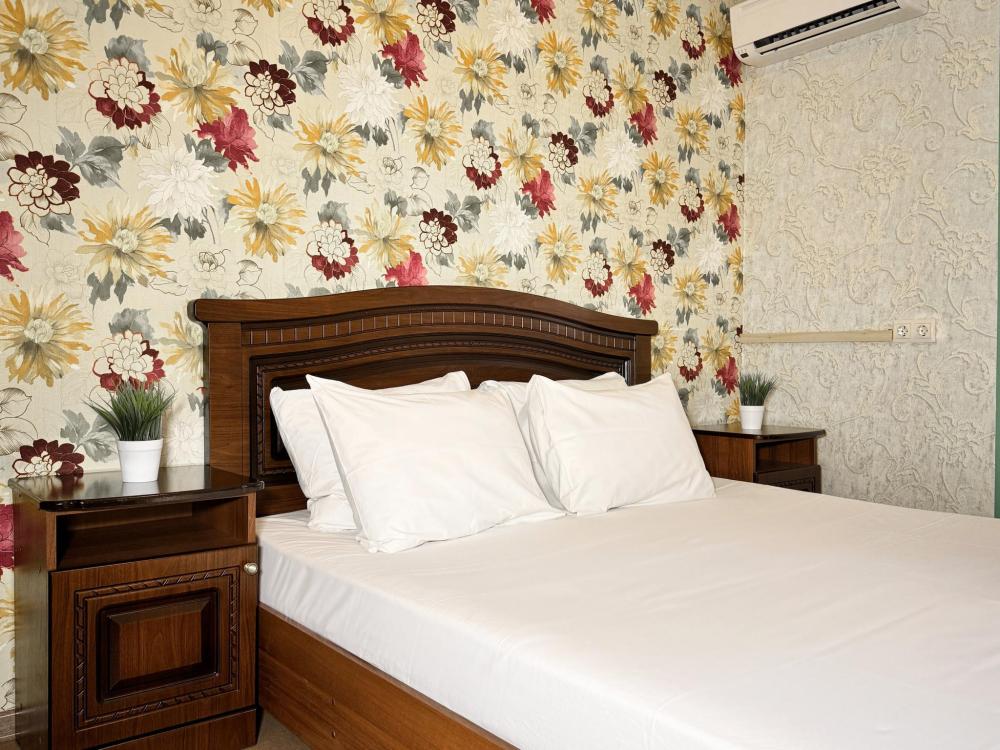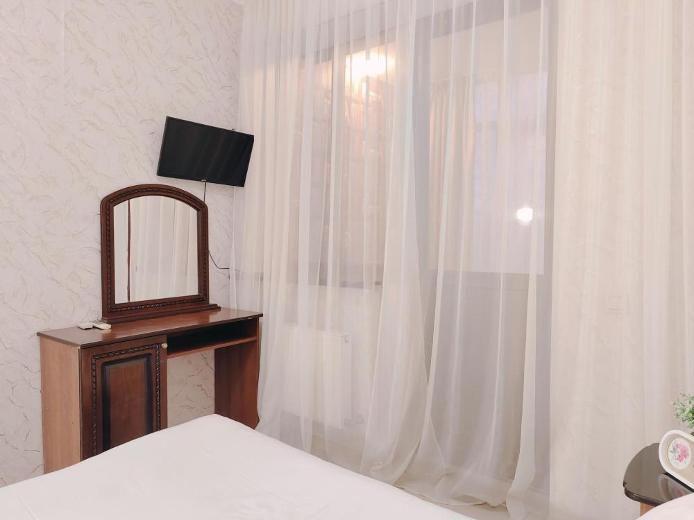 Уютный двухместный номер. В номере имеется двуспальная кровать, шкаф, гостиная зона (диванчик, журнальный столик, телевизор, мини-холодильник), кондиционер. Ванная комната: душевая кабина, раковина, туалет. Номер без балкона.