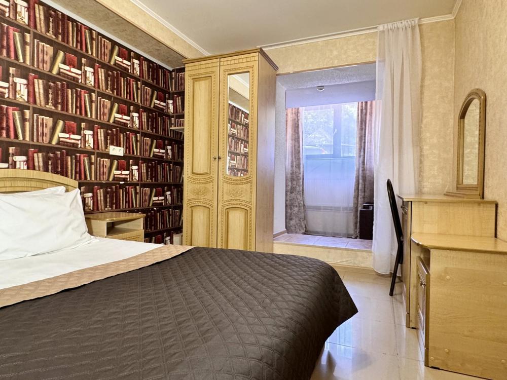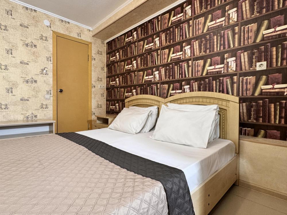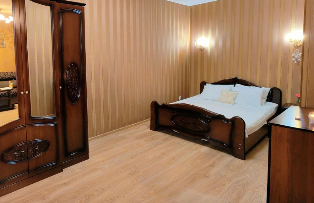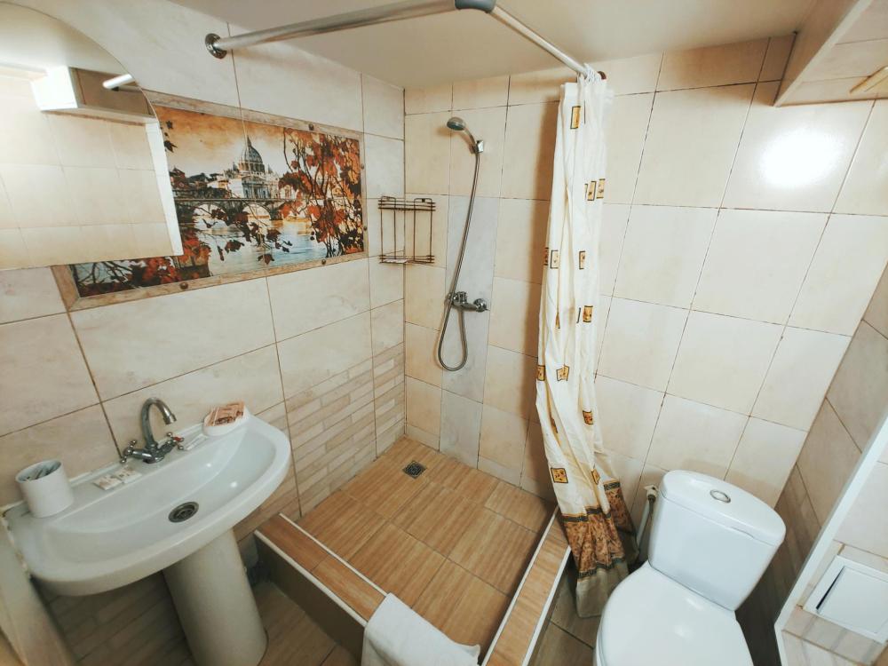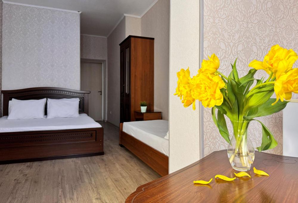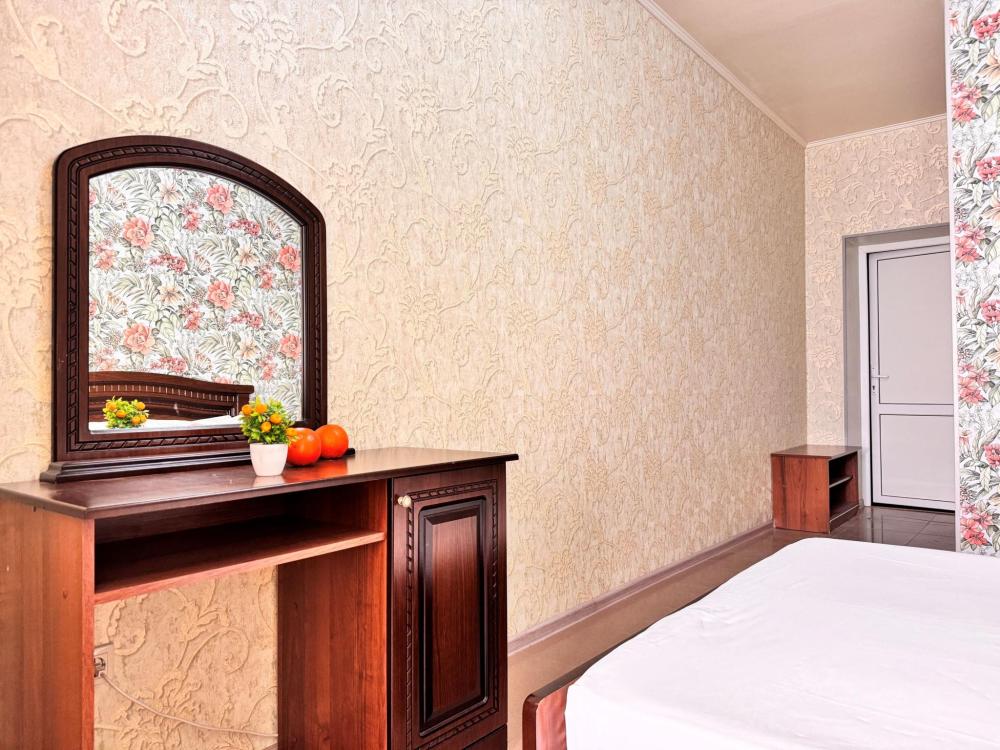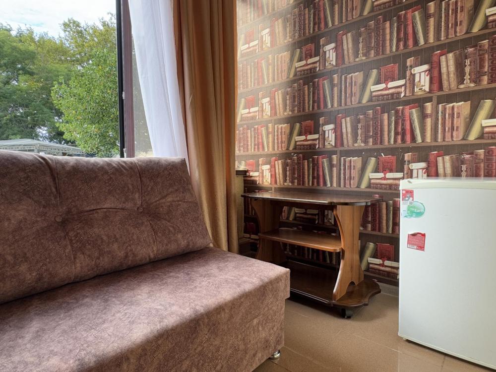 Просторный однокомнатный номер с возможность размещения до 5ти человек. В номере имеется: двуспальная кровать, диван-кровать, кресло-кровать, прикроватные тумбочки, журнальный столик, шкаф, телевизор, мини-холодильник, кондиционер. На лоджии находится кресло-кокон. Ванная комната: душевая кабина, раковина, туалет.