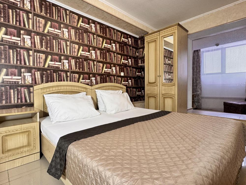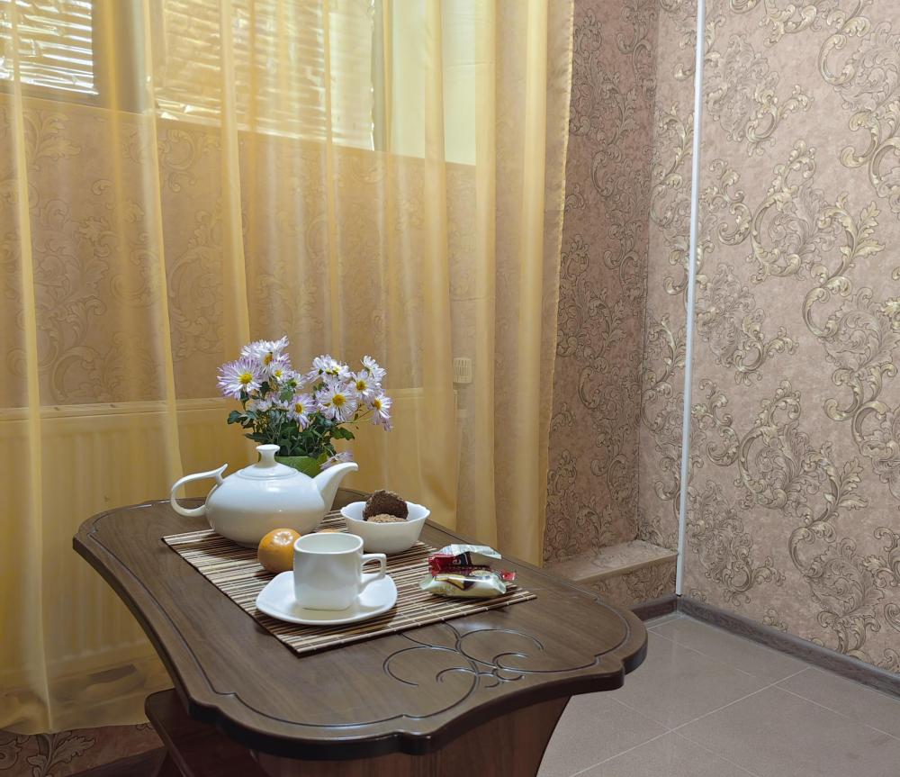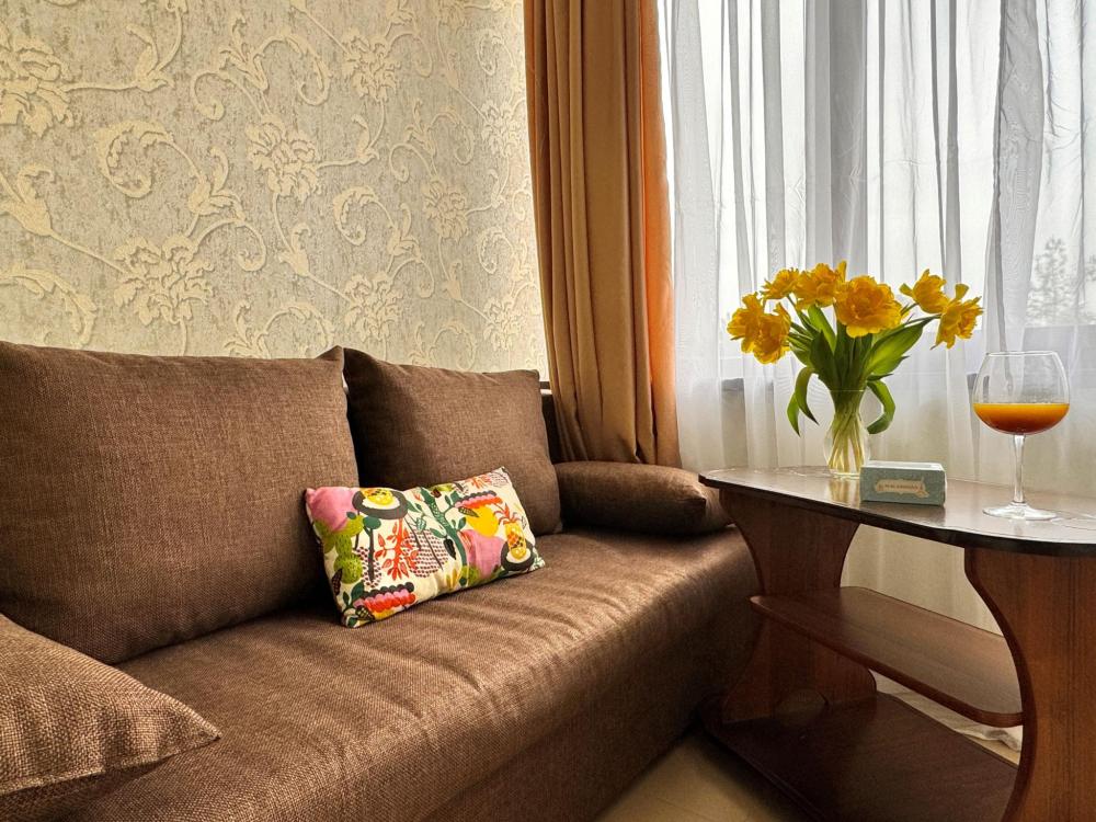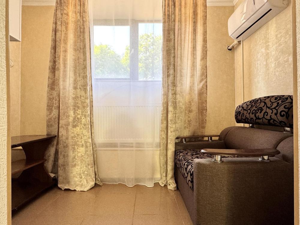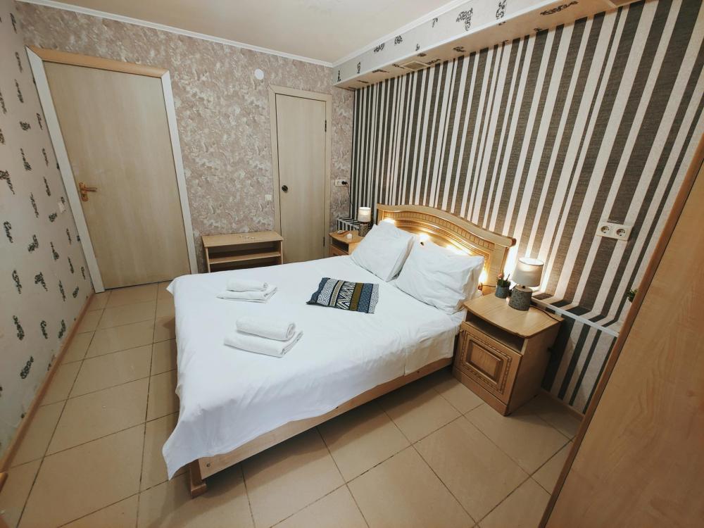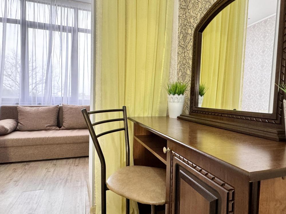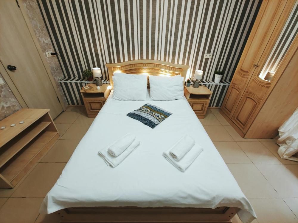 Просторный однокомнатный номер с возможность размещения до 5ти человек. В номере имеется: двуспальная кровать, диван-кровать, кресло-кровать, прикроватные тумбочки, журнальный столик, шкаф, телевизор, мини-холодильник, кондиционер. На лоджии находится кресло-кокон. Ванная комната: душевая кабина, раковина, туалет.