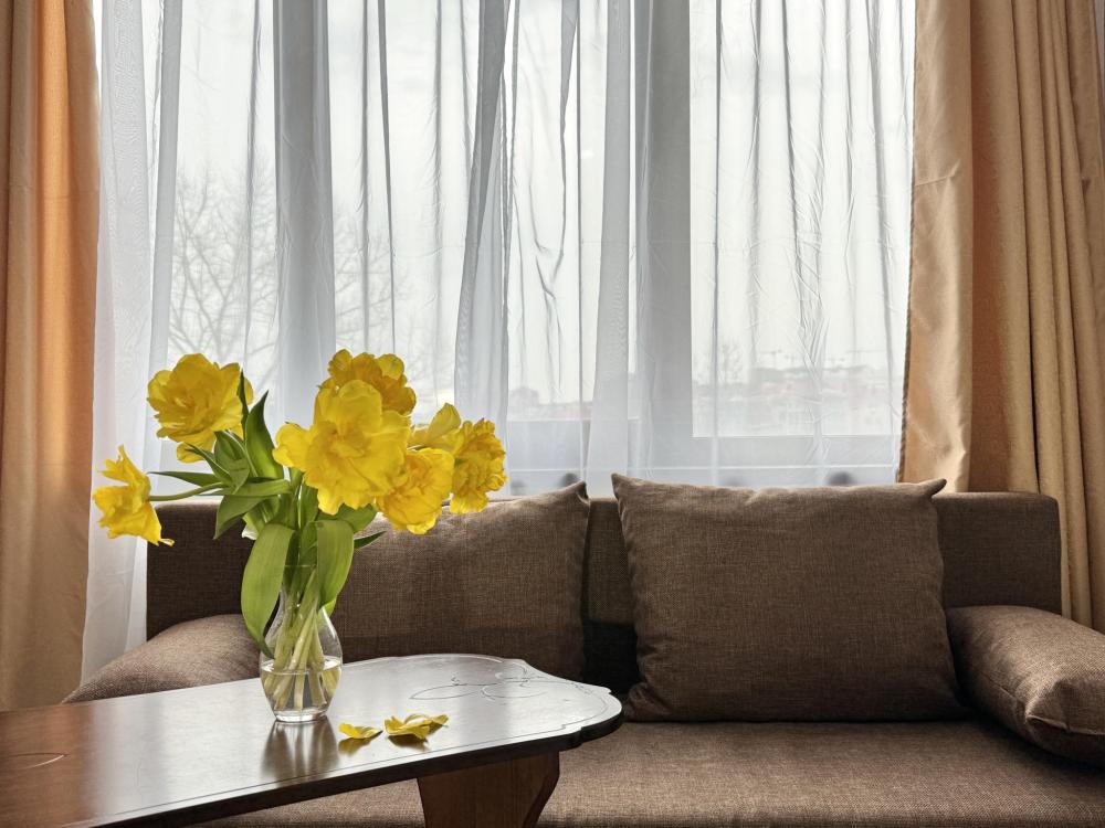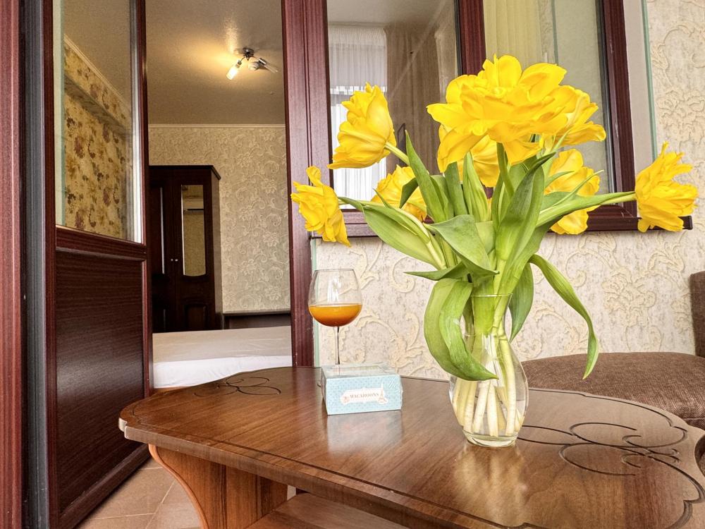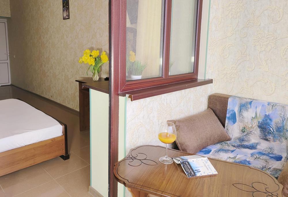 Номера категории Джуниор Сют отличает теплой и уютной атмосферой. В номере имеется двуспальная кровать, шкаф, гостиный уголок (диванчик, журнальный столик, телевизор, мини-холодильник), кондиционер. Номер без балкона.
