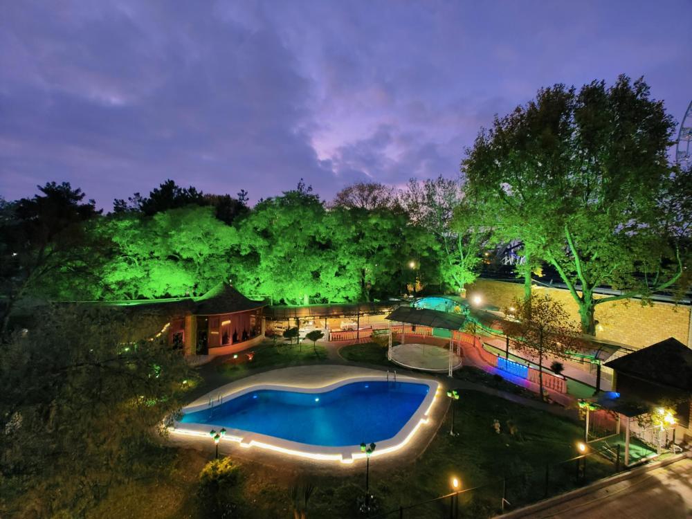 Просторный комфортабельный номер с панорамными окнами и шикарным видом на колесо обозрения. В номере имеется небольшая лоджия с панорамными окнами и потрясающим видом на территорию отеля, бассейн и парк. Номер оборудован: двуспальная кровать, прикроватные тумбочки, комод, зеркало, шкаф, телевизор, мини-холодильник, кондиционер.