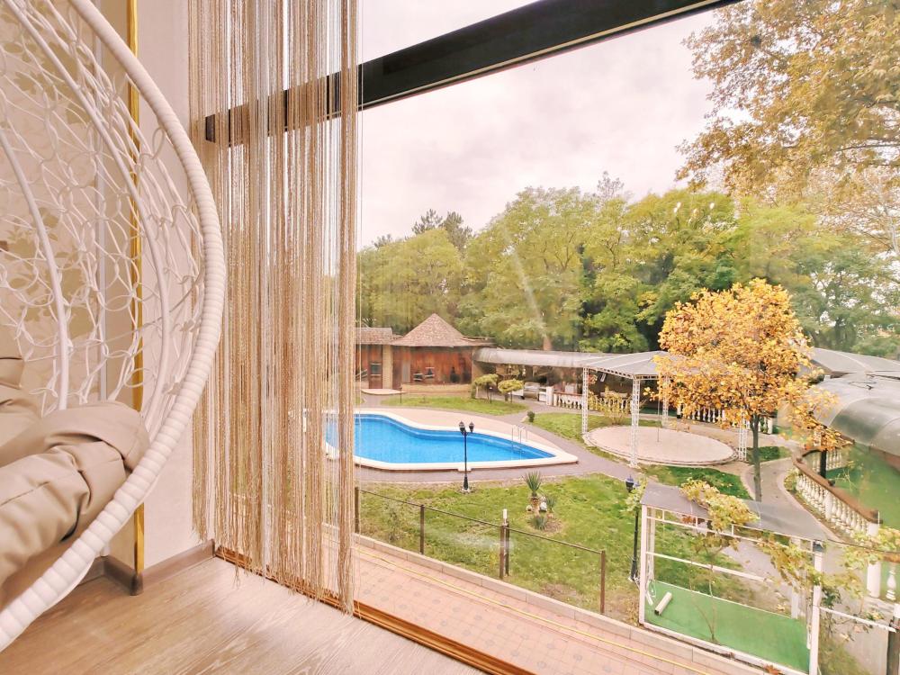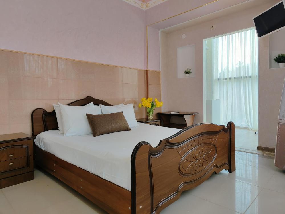 Уютный двухместный номер комфорт с видом на бассейн и видом на территорию. Номер оснащен: двуспальная кровать, прикроватные тумбочки, шкаф, туалетный столик, зеркало, стул, журнальный столик, телевизор, мини-холодильник, кондиционер. В номере есть небольшая лоджия.