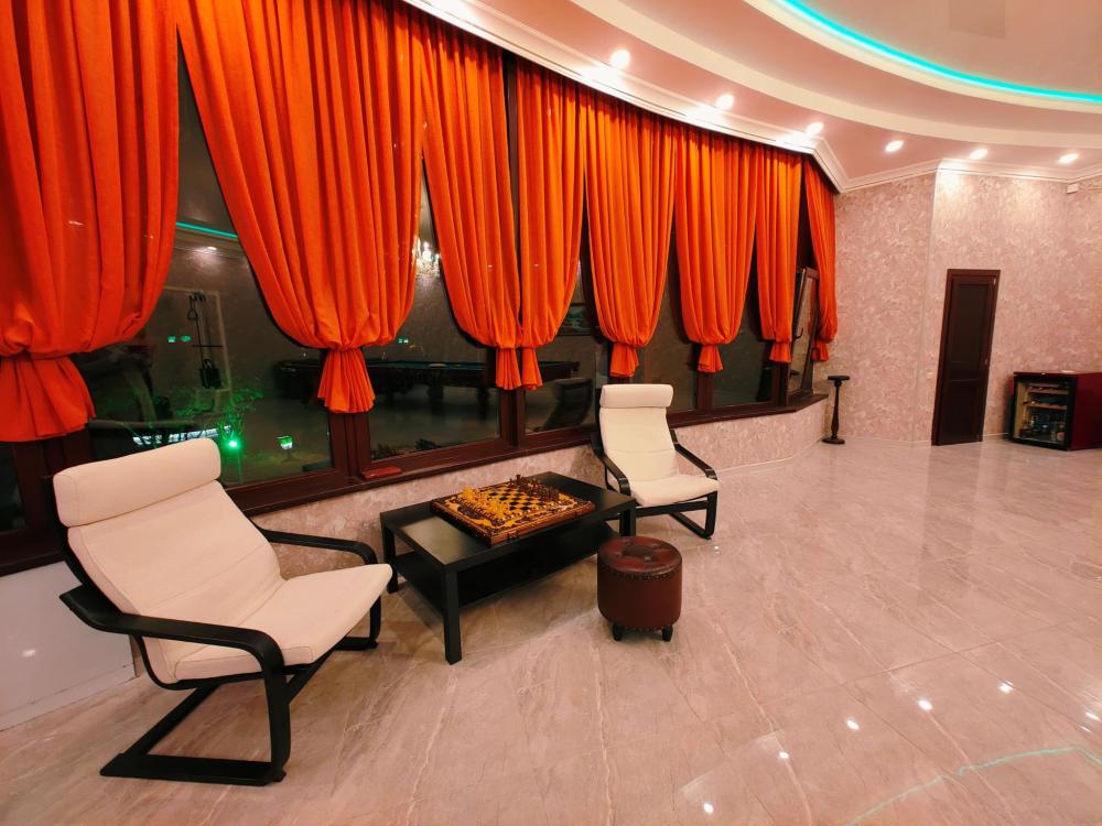 Просторный бизнес-номер для деловых людей, оборудованный ноутбуком и рабочим местом. В номере имеется: двуспальная кровать, раскладной диван, прикроватные тумбочки, журнальный столик, письменный стол и шкаф, шкаф для одежд, стулья, телевизор, мини-холодильник, кофемашина, кондиционер. В номере есть огромная лоджия с панорамным видом на бассейн и территорию отеля, оборудованная мебелью для отдыха.
