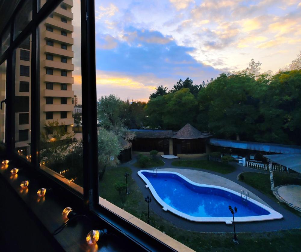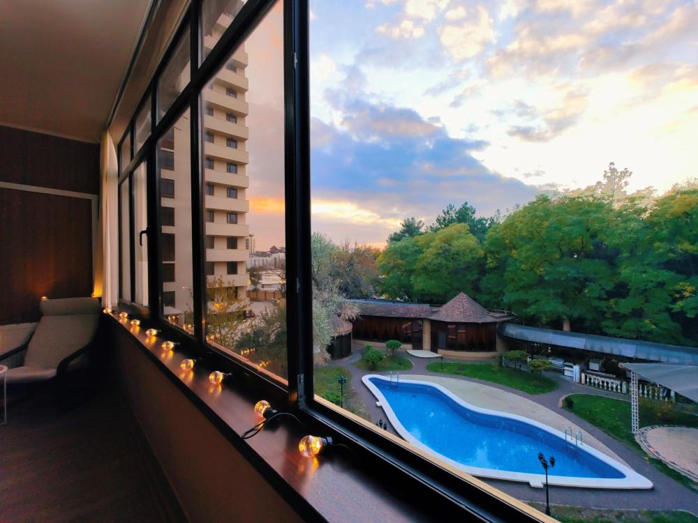Уютный двухместный номер комфорт с видом на бассейн. Номер оснащен: двуспальная кровать, прикроватные тумбочки, шкаф, туалетный столик, зеркало, стул, журнальный столик, телевизор, мини-холодильник, кондиционер. Ванная комната: душевая кабина, раковина, туалет. В номере есть небольшая лоджия.