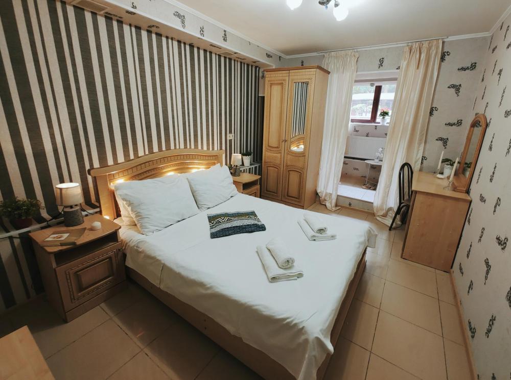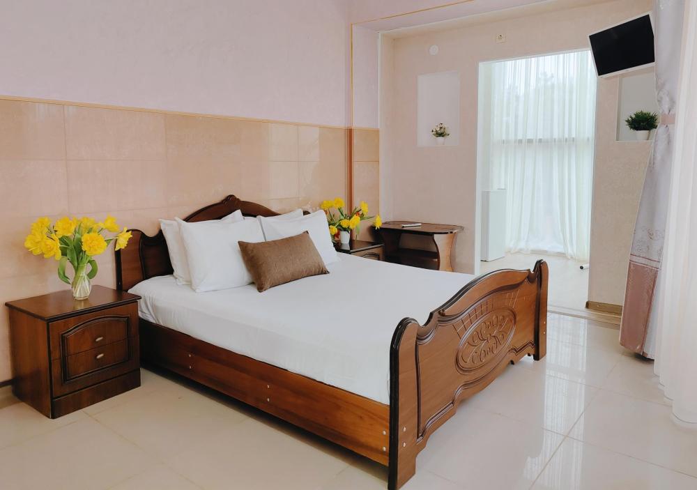 Номер категории «стандарт» находится в цокольном этаже, вид из окна на столовую и территорию отеля Номер оснащен: двуспальная кровать, прикроватные тумбочки, шкаф, туалетный столик, зеркало, телевизор, мини-холодильник. В номере имеется небольшая лоджия.