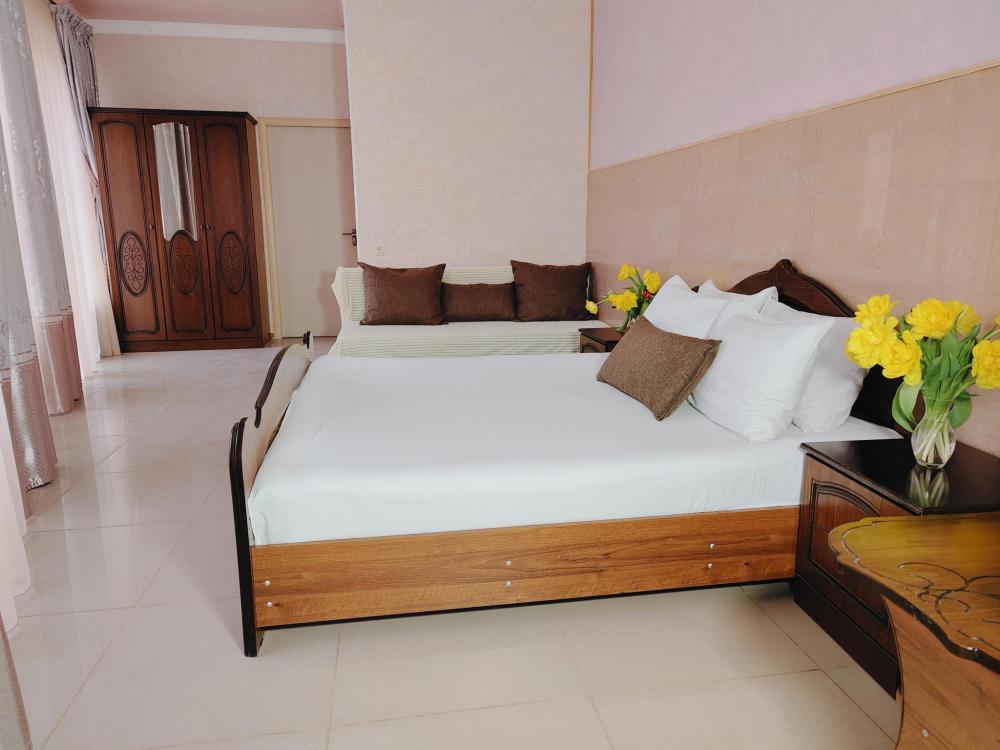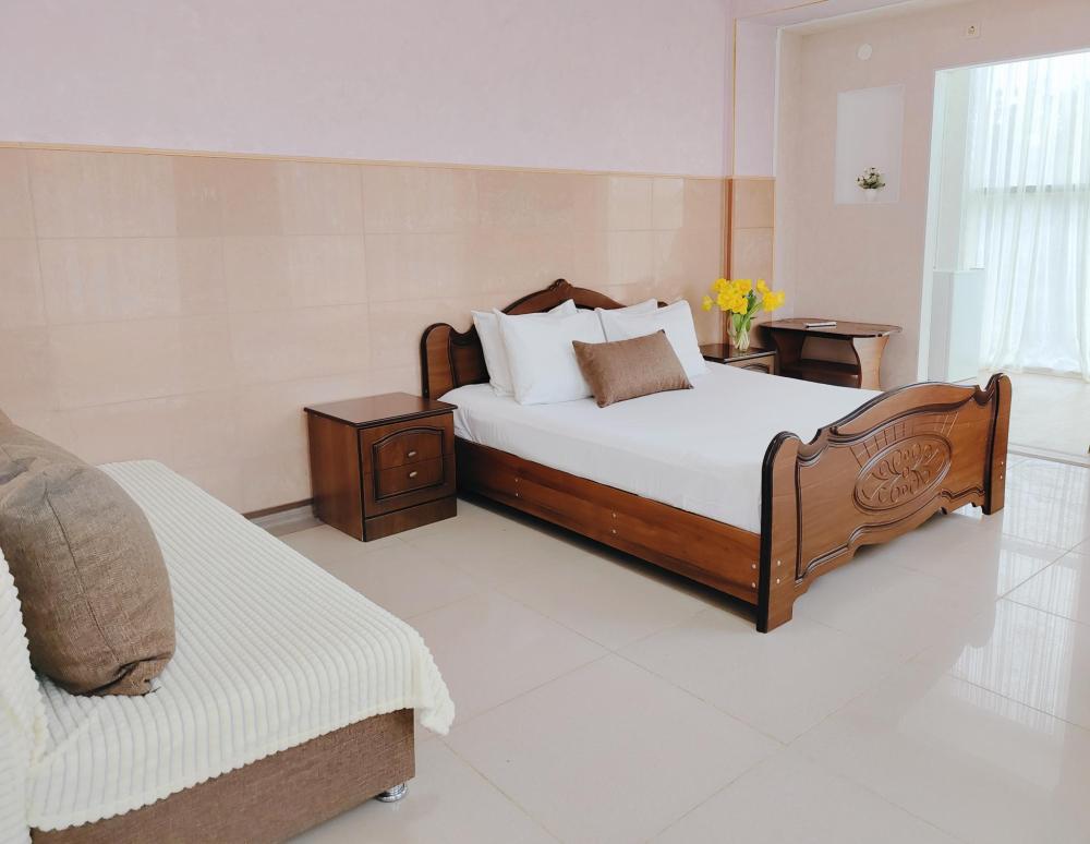 Просторный однокомнатный 4х местный номер с видом на территорию отеля. В номере имеется: двуспальная кровать, диван-кровать, прикроватные тумбочки, журнальный столик, шкаф, телевизор, мини-холодильник, кондиционер. Лоджия с зоной отдыха.