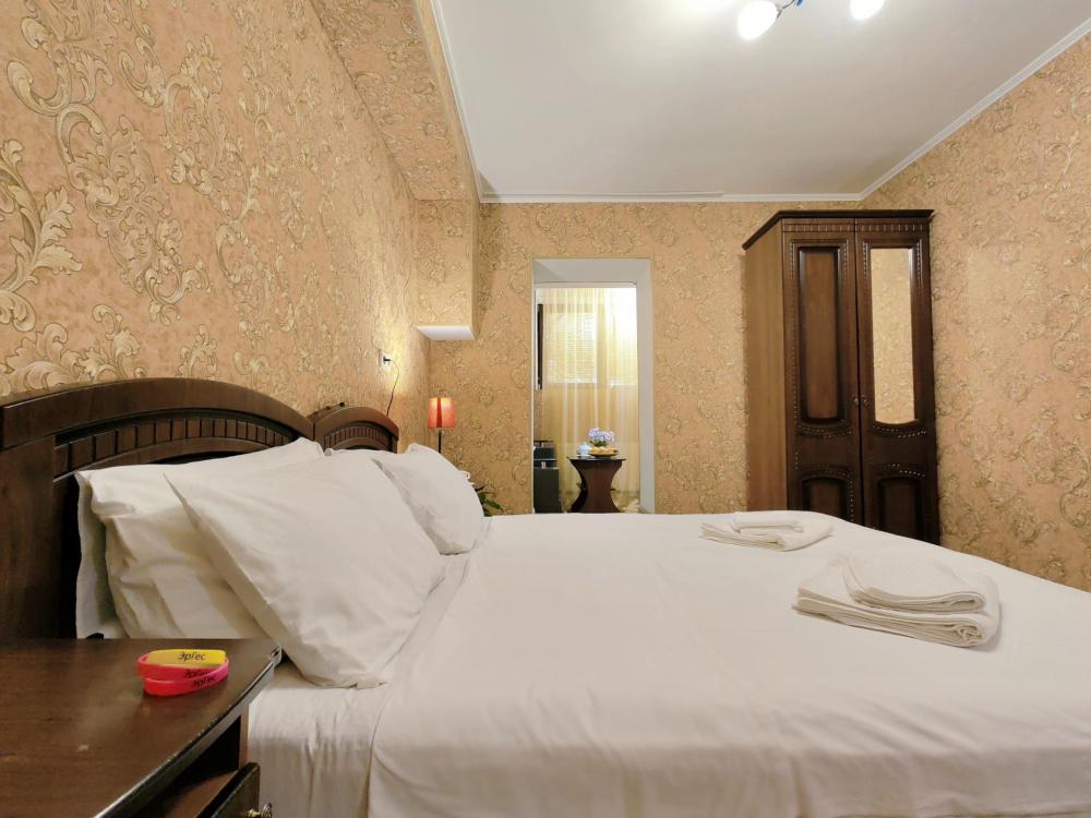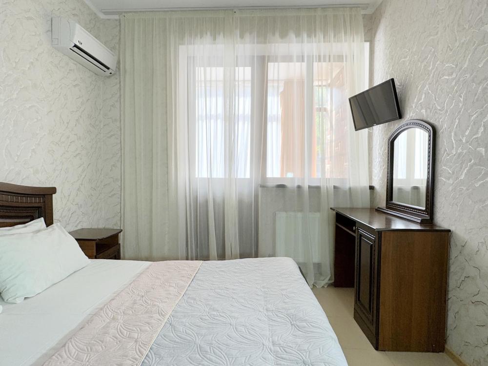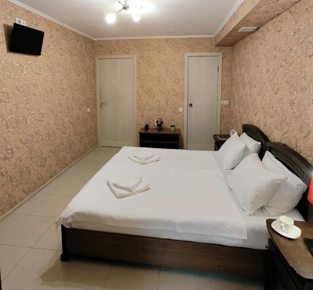 Номер категории «стандарт» находится в цокольном этаже с видом на столовую и территорию отеля. Номер оснащен: двуспальной кроватью, диван-кровать шириной 120 см, прикроватные тумбочки, шкаф, туалетный столик, зеркало, телевизор, мини-холодильник, кондиционер, журнальный столик, стул. В номере имеется небольшая лоджия с видом на столовую и территорию.