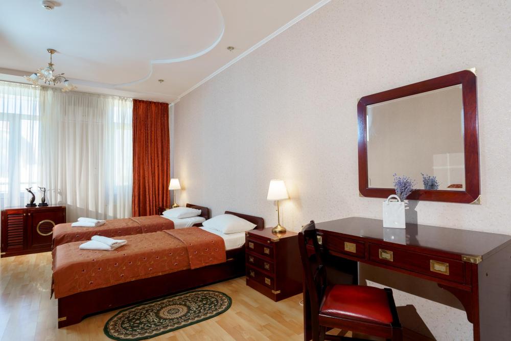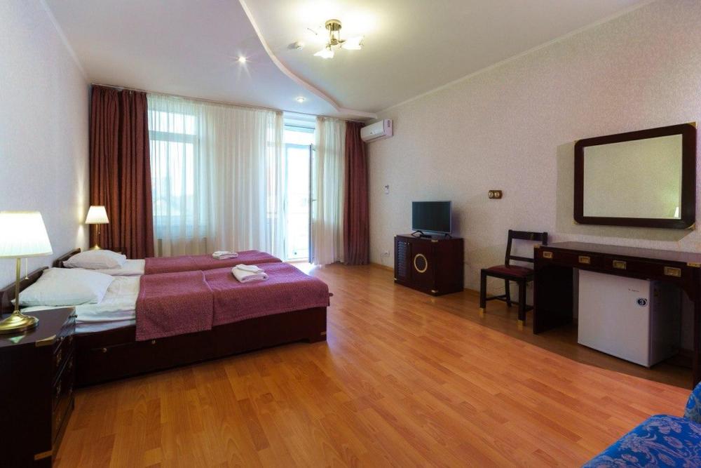Комфортный двухкомнатный номер с двуспальной или двумя односпальными кроватями, двухместным раскладным диваном и балконом.