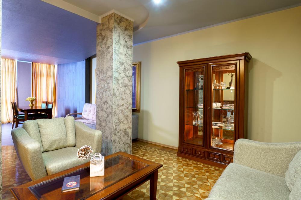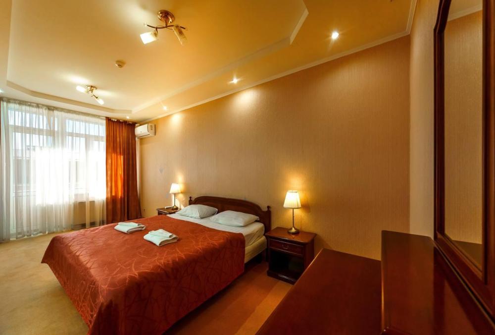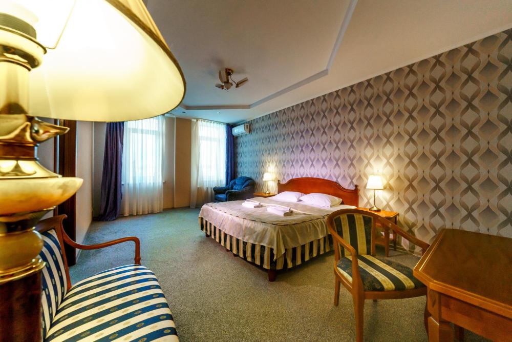 Просторный двухкомнатный номер с двуспальной кроватью, двухместным раскладным диваном и балконом.