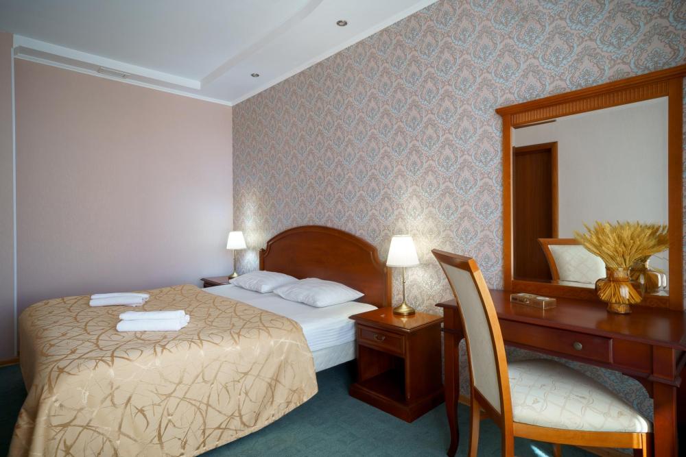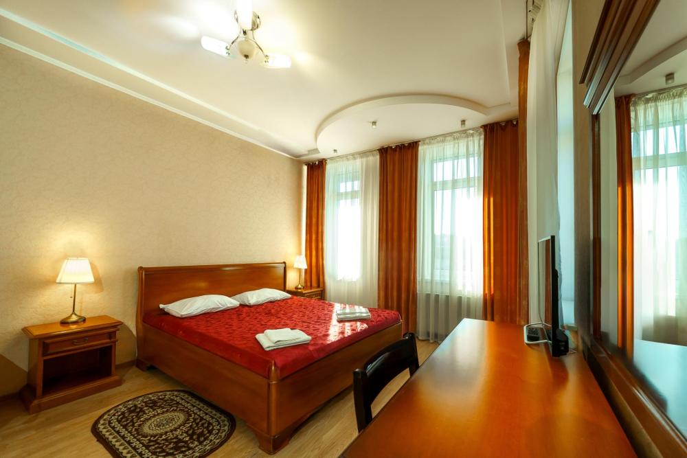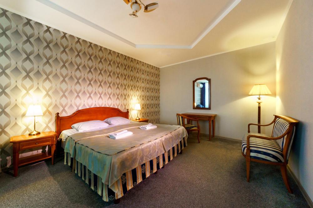 Уютный однокомнатный номер с одной двуспальной или двумя односпальными кроватями, раскладным креслом или раскладной кроватью.