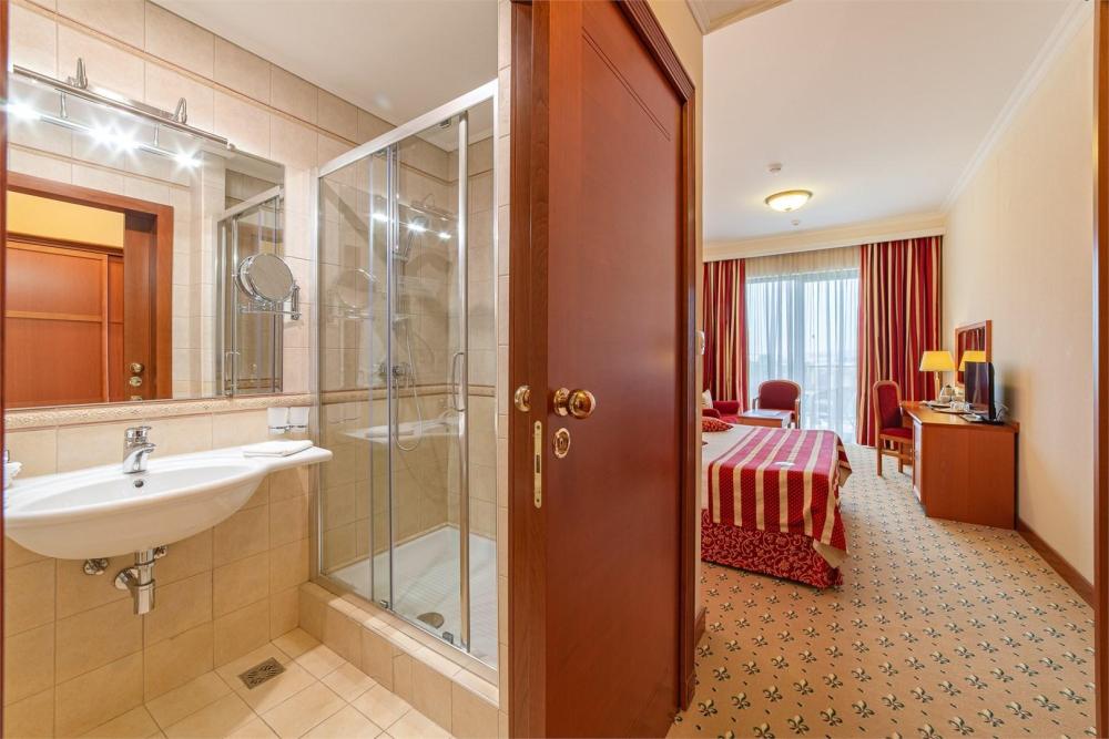 Площадь номера 50 м2. Номер состоит из спальной, гостиной и ванной комнаты. В номере имеется спутниковое телевидение (два плазменных телевизора), три телефона, мягкая мебель, рабочий стол, двуспальная кровать 180х200 см, мини-бар, сейф, климат-контроль. Ванная комната: душ еврокабина, санузел, фен, макияжное увеличительное зеркало, телефон. На каждого гостя: халат махровый, полотенца, тапочки, продукция индивидуального пользования с логотипом отеля. Вид на море и город. В стоимость номера включены: услуги носильщика, медицинская страховка, посещение тренажерного зала (с 9 до 20 часов).