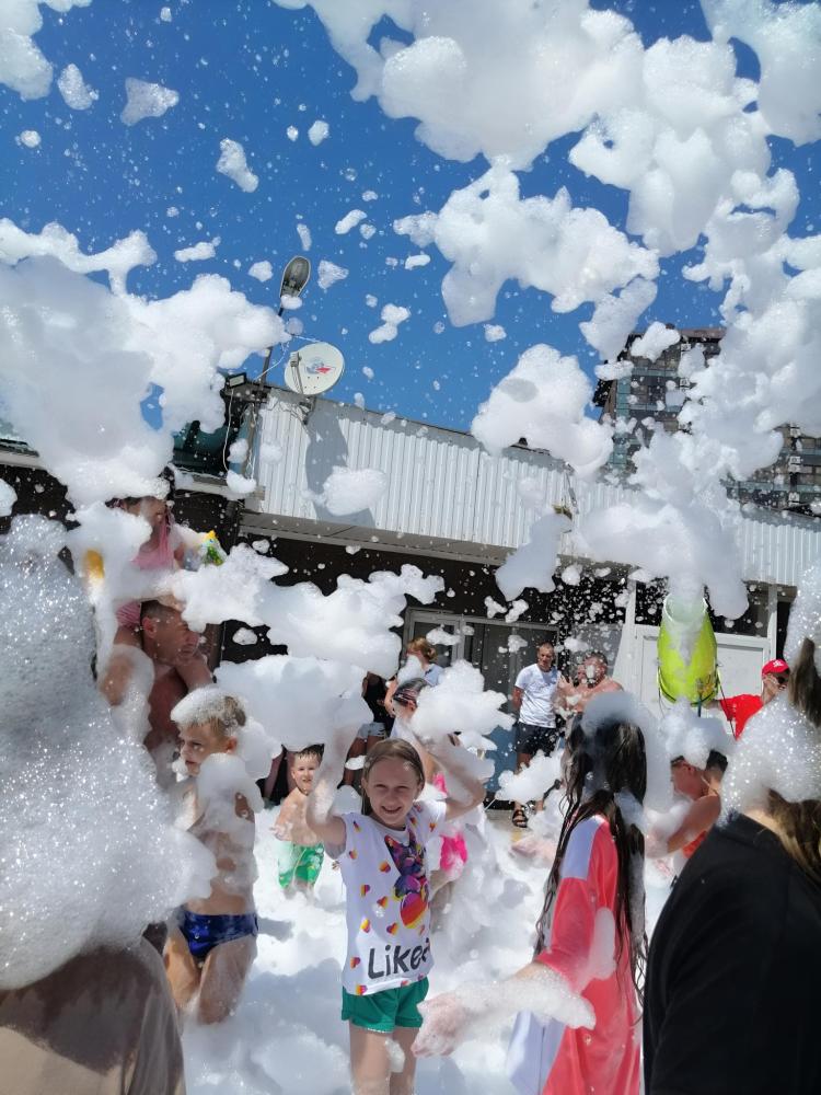 Номер полулюкс семейный (24кв.м., двуспальная кровать, двуспальный диван, до двух дополнительных мест еврораскладушки или детские кроватки бесплатно, душ, туалет, ТВ, холодильник, кондиционер, индивидуальный столик со стульями на террасе перед входом в номер) В цену включено: проживание в номере, бассейн с подогревом, детская комната, анимационные программы, детская площадка, батут, встреча на ЖД вокзале, кухня для самостоятельного приготовления. Бесплатно прогулочные коляски, детские кроватки, стульчики для кормления, ванночки, горшки и т.п.