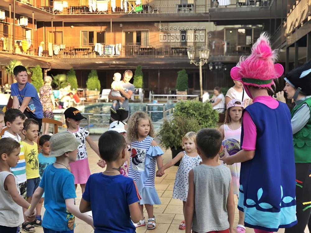 Номер полулюкс (18кв.м., двуспальная кровать, односпальная кровать, дополнительное место еврораскладушка или детская кроватка бесплатно, душ, туалет, ТВ, холодильник, кондиционер) В цену включено: проживание в номере, бассейн с подогревом, детская комната, анимационные программы, детская площадка, батут, встреча на ЖД вокзале, кухня для самостоятельного приготовления. Бесплатно прогулочные коляски, детские кроватки, стульчики для кормления, ванночки, горшки и т.п.