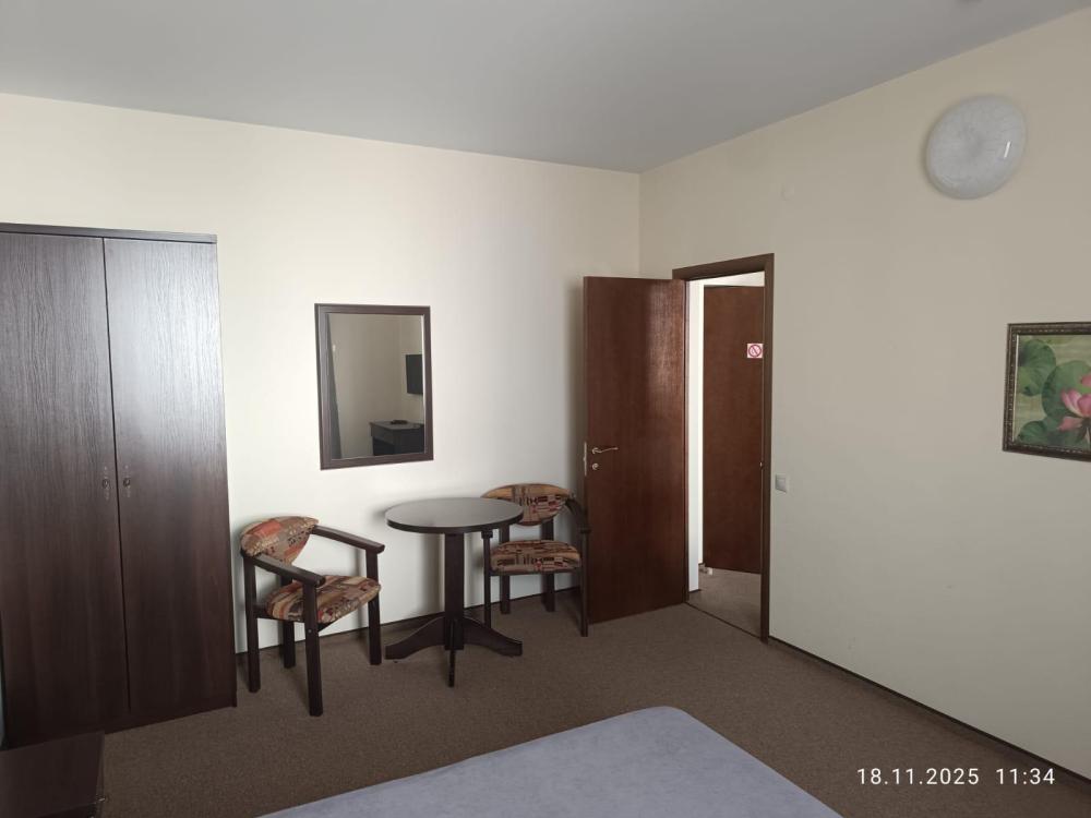В номере: двуспальная кровать и две односпальные кровати, прикроватные тумбочки, журнальный столик, два полукресла, двустворчатый шкаф, сейф, телефон, холодильник, мини-бар, жк-телевизор, сплит-система, санузел (душевая кабина, умывальник, фен, туал.принадлежности) Завтрак входит в стоимость.