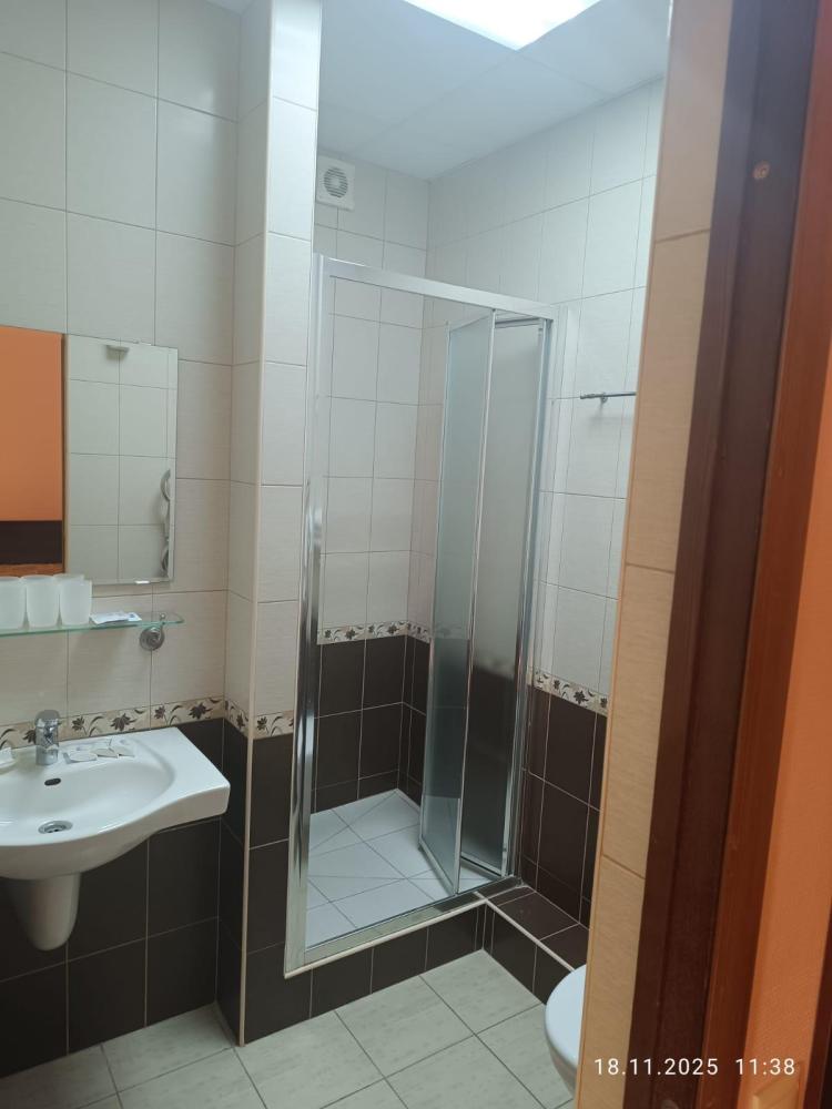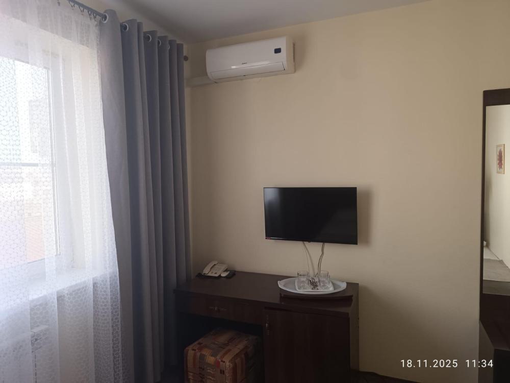 В номере: полутороспальная кровать, прикроватные тумбочки, двустворчатый шкаф, сейф, телефон,интернет, холодильник, жк-телевизор, сплит-система, санузел (душевая кабина, умывальник, фен, туал.принадлежности)