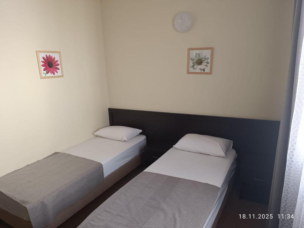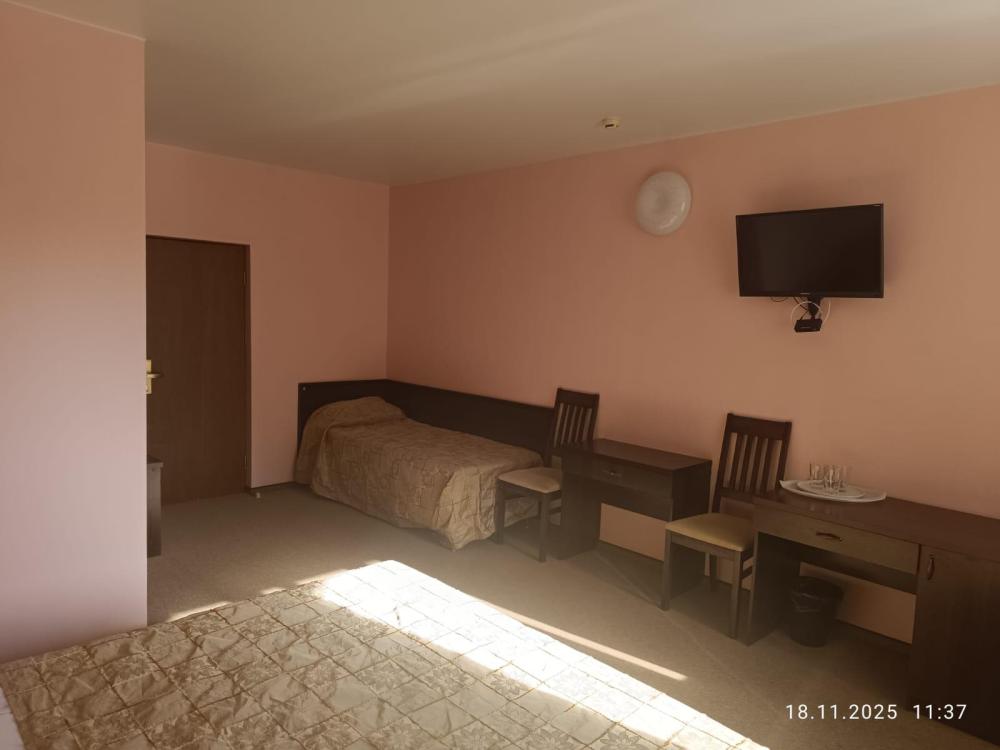 Двухкомнатный номер с 1 двуспальной кроватью и 2-мя односпальными кроватями , прикроватные тумбочки, журнальный столик, два полукресла, двустворчатый шкаф, сейф, телефон, холодильник, 2 жк-телевизора, 2 сплит-системы, санузел (душевая кабина, умывальник, фен, туал.принадлежности)