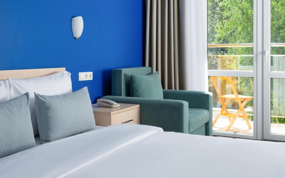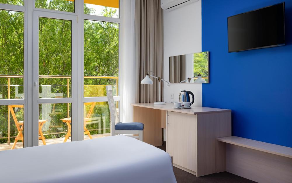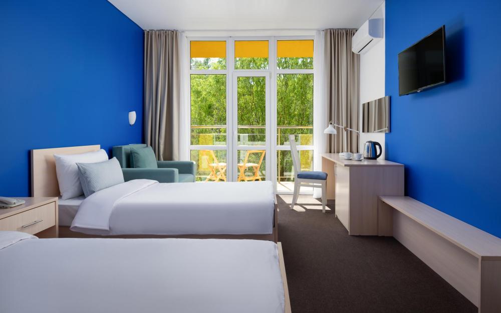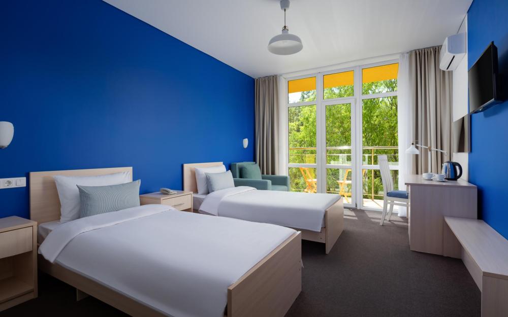 Эти номера выполнены в морском расслабляющем дизайне и предназначены для посетителей, предпочитающих спать раздельно. В номере: 2 односпальные кровати, раскладное кресло, зеркало, шкаф, рабочее место, мини-холодильник, телевизор, WI-FI, сплит-система, телефон (внутренняя связь), гладильные принадлежности, сейф, чайник, чайный набор, бутилированная вода; балкон с мебелью и сушилкой. В ванной комнате: душевая кабина, фен, полотенца, туалетные принадлежности, халаты, тапочки.