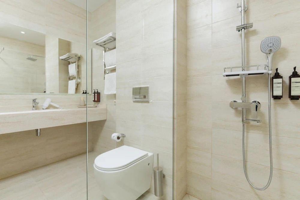 Двухкомнатный номер площадью 50 кв.м. с элегантным современным интерьером. Просторные комнаты предлагают зону для отдыха и работы, идеально подходящие для комфортного пребывания. Номера находятся на втором этаже корпуса (без лифта).