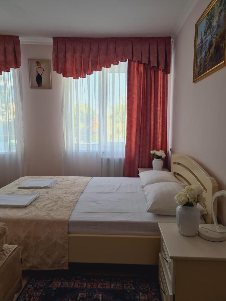 Уютный номер, рассчитан на размещение 4 гостей. В номерах есть все необходимое для комфортного проживания: хорошая звукоизоляция, удобная двуспальная кровать, односпальная кровать , диван-кровать, шкаф для одежды. Санузел с душем. Техника: ЖК-телевизор, сплит-система, холодильник. Постельное белье и комплект полотенец на каждого гостя.