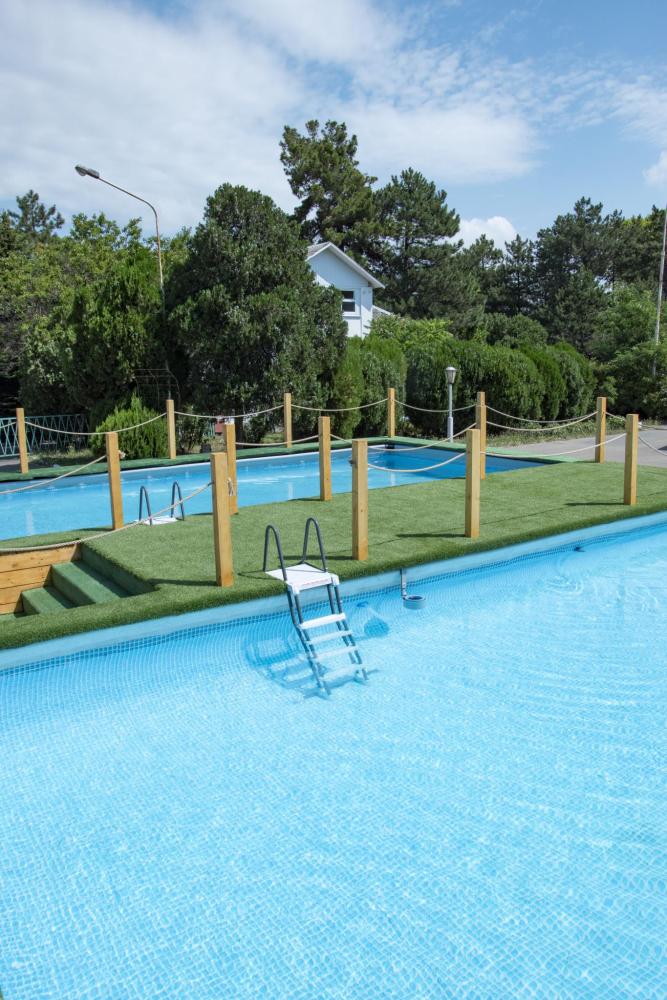 Площадь домика: 17 кв.м Кровать 2 спальная или 2 отдельные кровати, тумба 2 шт, туалетный столик, зеркало, кондиционер, тв. С/у:душ, унитаз, раковина.полотенца, косметические принадлежности шампунь, гель для душа. Домик без балкона. Но у домика есть зона со столом и стульями