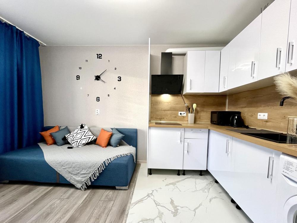 Студия в ЖК Горизонт с видом на море. В квартире есть все необходимое для комфортного проживания: большая двухспальная кровать с ортопедическим матрасом, телевизор, обеденный стол, и кухонная зона со всем необходимым, большая лоджия, вся необходимая бытовая техника....