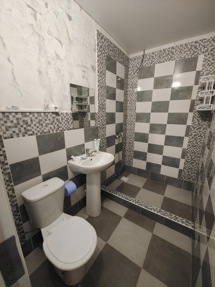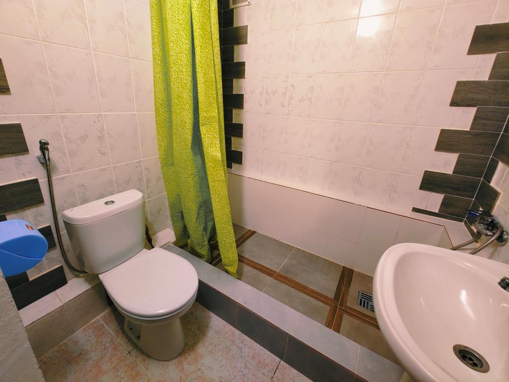 Оснащение номера: 2х спальная кровать, санузел, душ, ТВ, холодильник, кондиционер, мини-кухня(набор посуды, микроволновка, мульмиварка/эл.печь), летняя мебель и лежаки для загара.