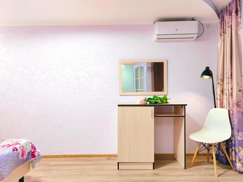 Оснащение номера: 3х местный+ доп. 2х спальная кровать,1но спальный диван, санузел, душ, ТВ, холодильник, кондиционер, индивидуальный ПК, принтер. С балконом и летней мебелью.