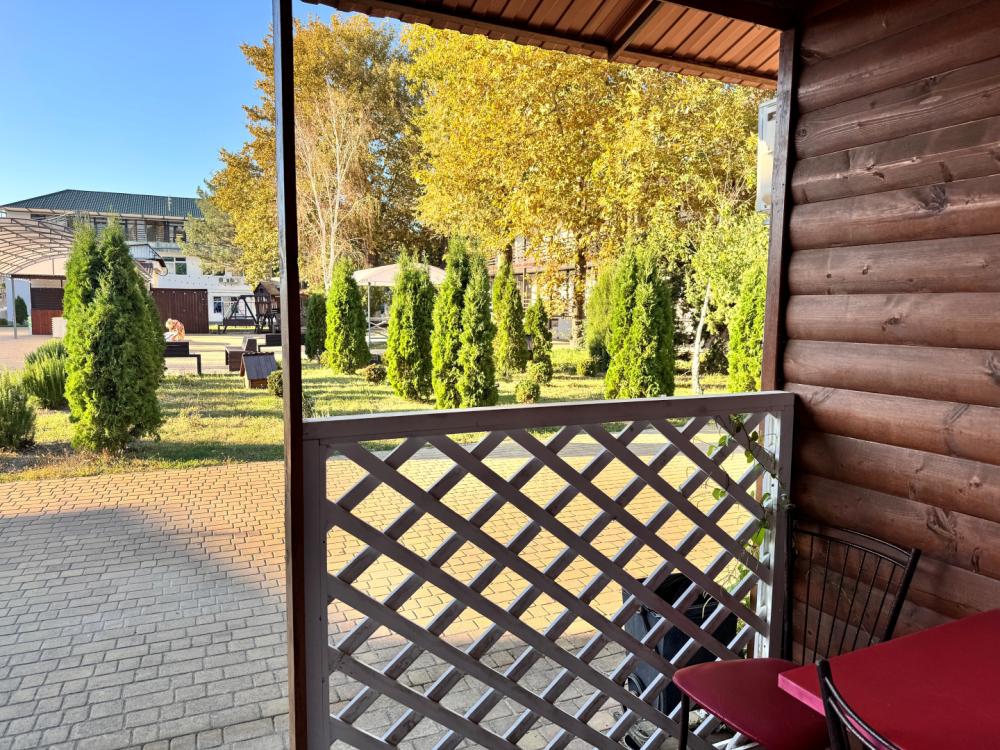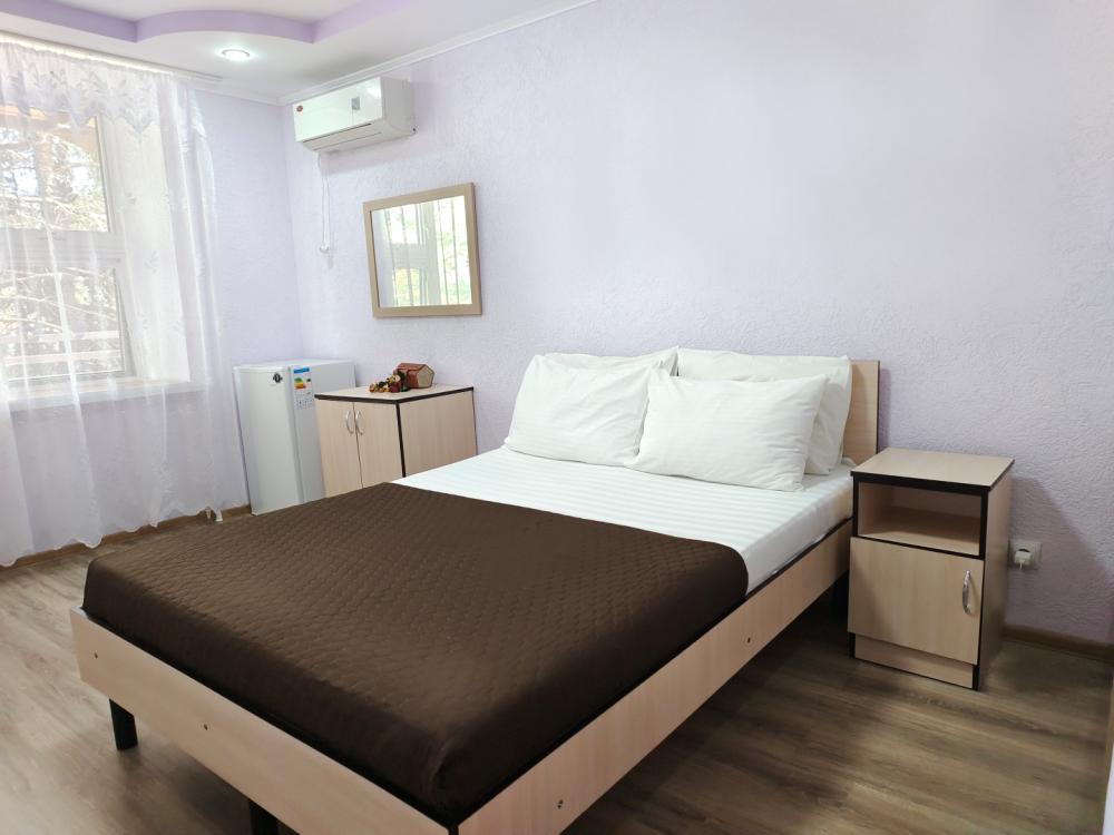 В номере: двуспальная кровать, санузел, душ, ТВ, холодильник, кондиционер, балкон и летнея мебель.