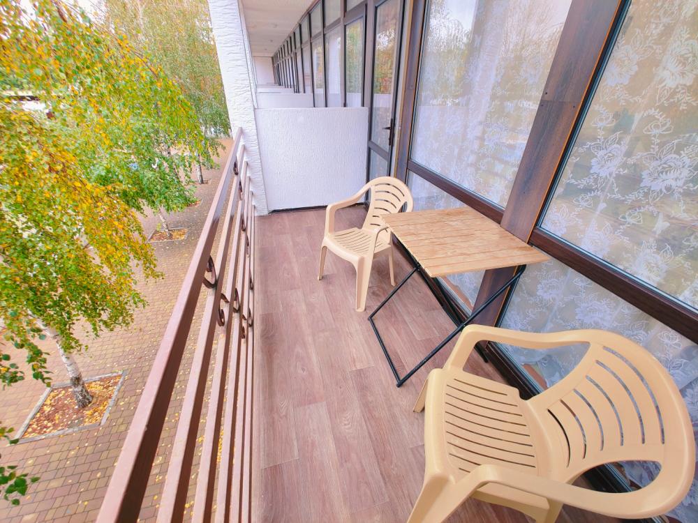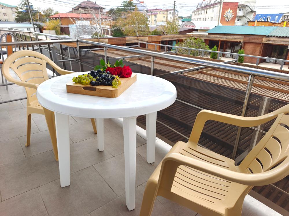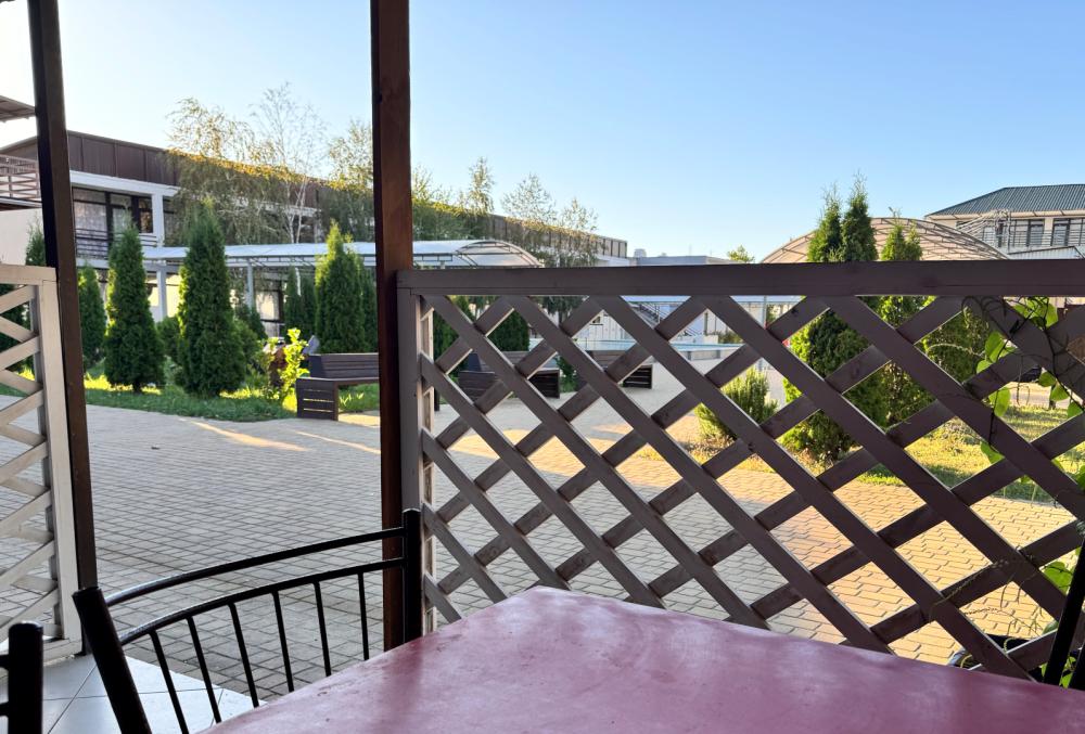 Оснащение номера: 2х местный+ доп. 2х спальная кровать, санузел, душ, ТВ, холодильник, кондиционер, индивидуальный ПК, принтер. С балконом и летней мебелью.