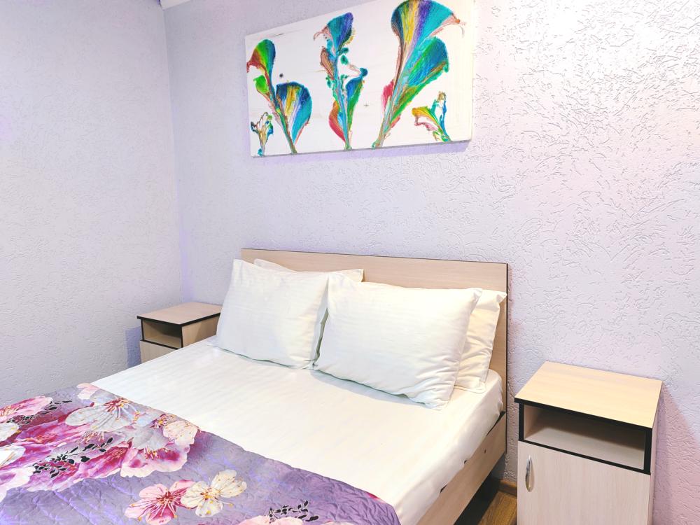 В номере: Двуспальная кровать, прикроватные тумбочки,журнальный столик, шкаф,вешалки,зеркало, телевизор, кондиционер, мини-холодильник, электрочайник, набор посуды. Ванная комната: душ, раковина, зеркало, фен, туалет, сушилка для одежды.