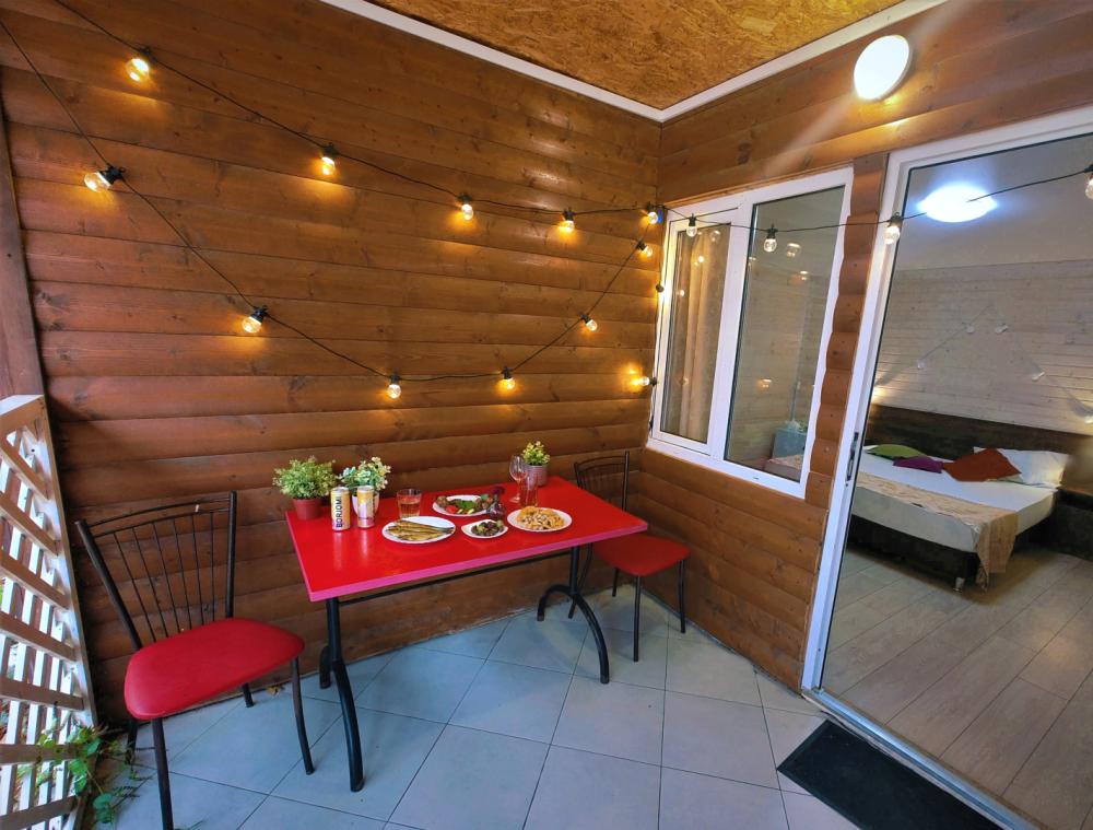 В номере: двуспальная кровать, двуспальный диван, санузел, душ, ТВ, холодильник, кондиционер, балкон и летняя мебель.