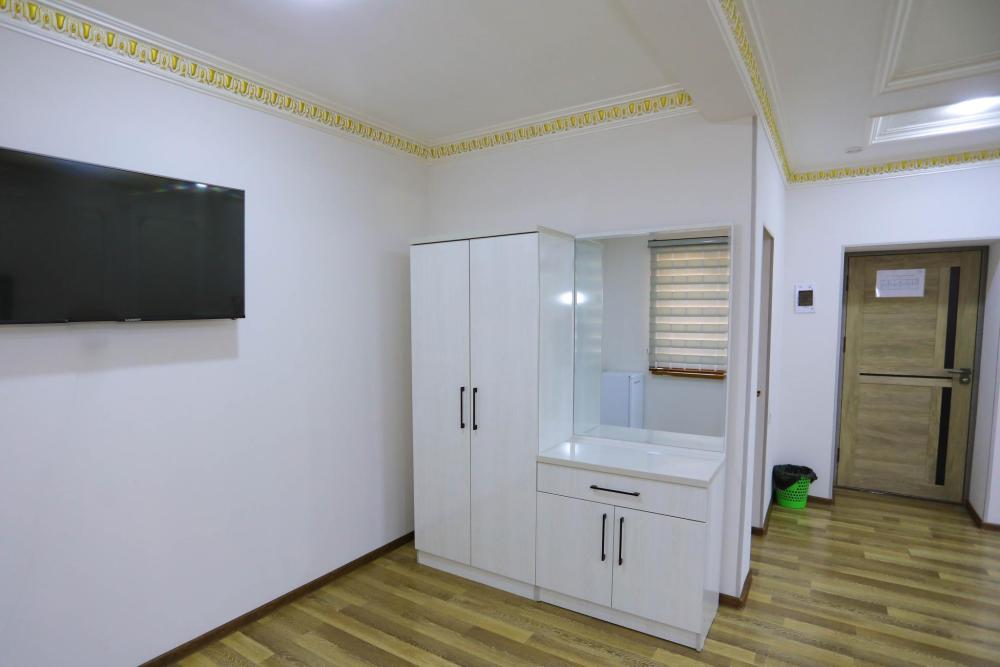 В номере имеется: вешалка, зеркало, прикроватные тумбочки, шкаф, кондиционер, телевизор, собственная ванная комната с душем и феном.