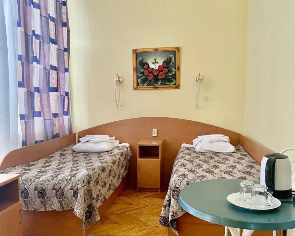 Небольшой номер с видом на горы и сад, двумя односпальными кроватями, душевой, общей прихожей, оборудован всем необходимым для пребывания в санаторно-гостиничном комплексе Изовела.