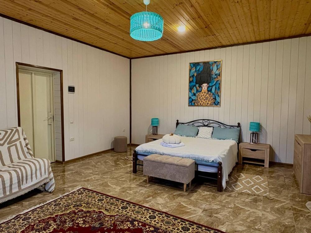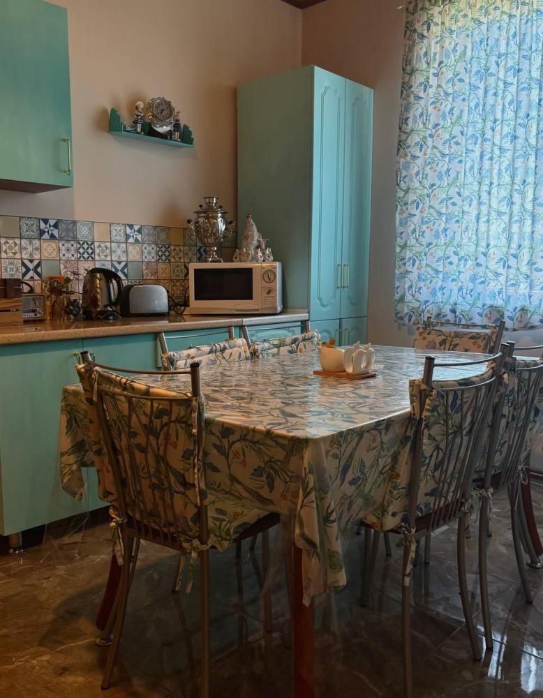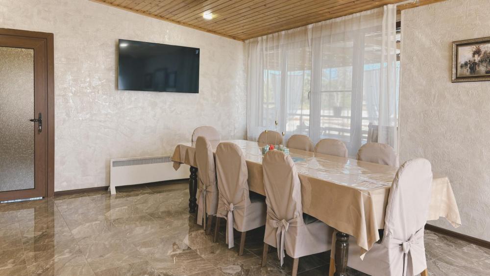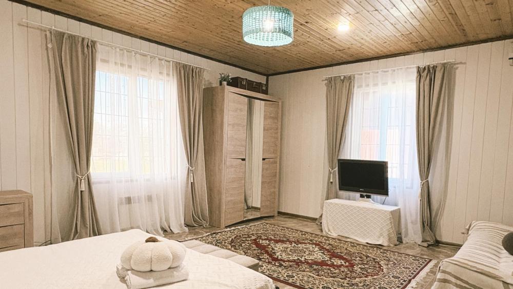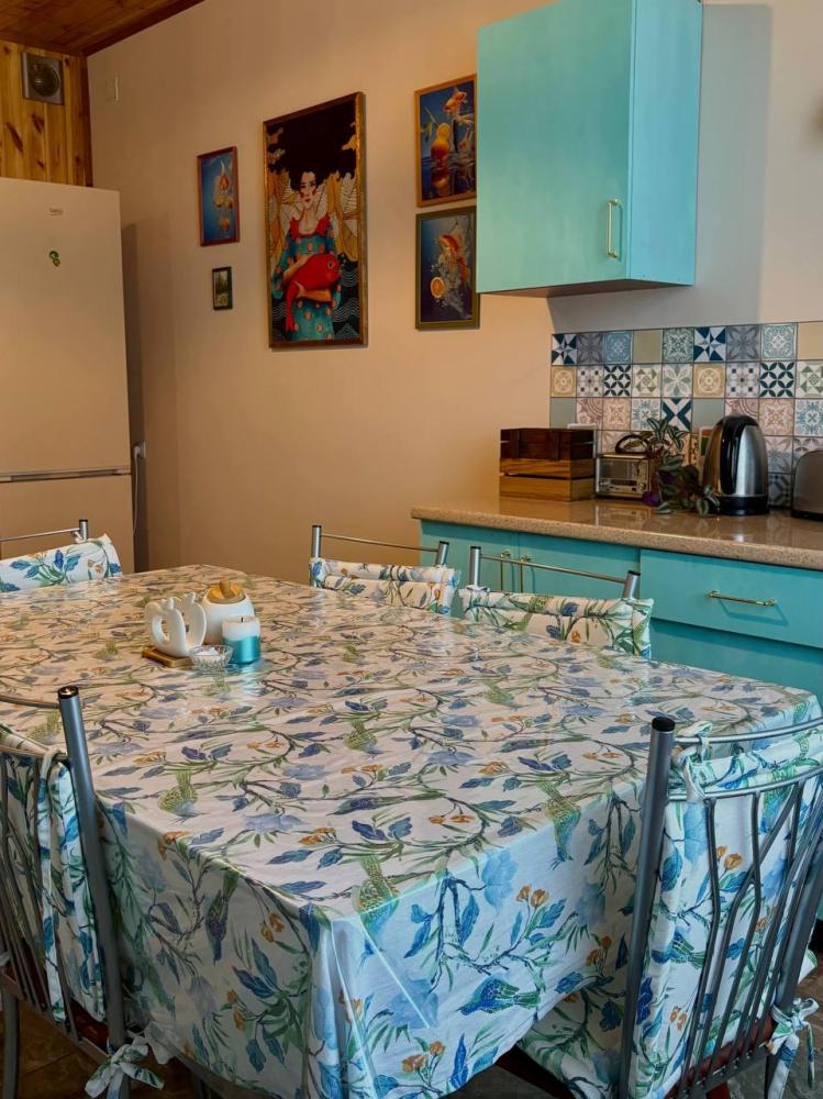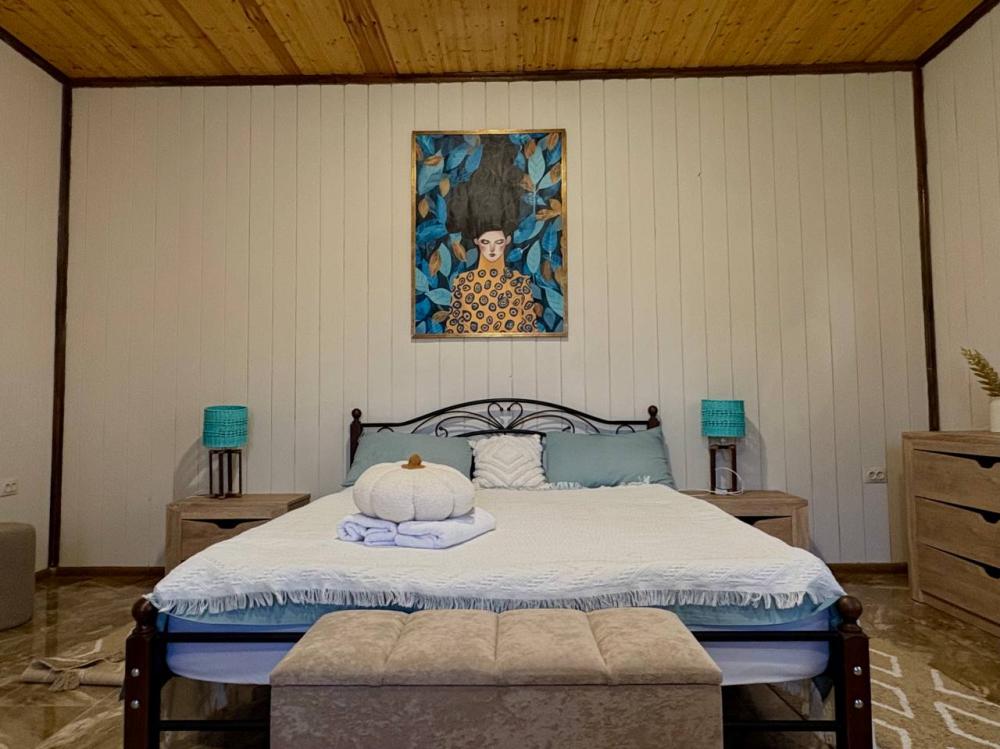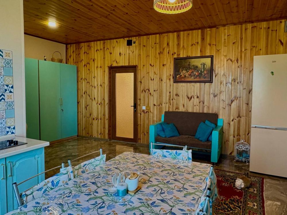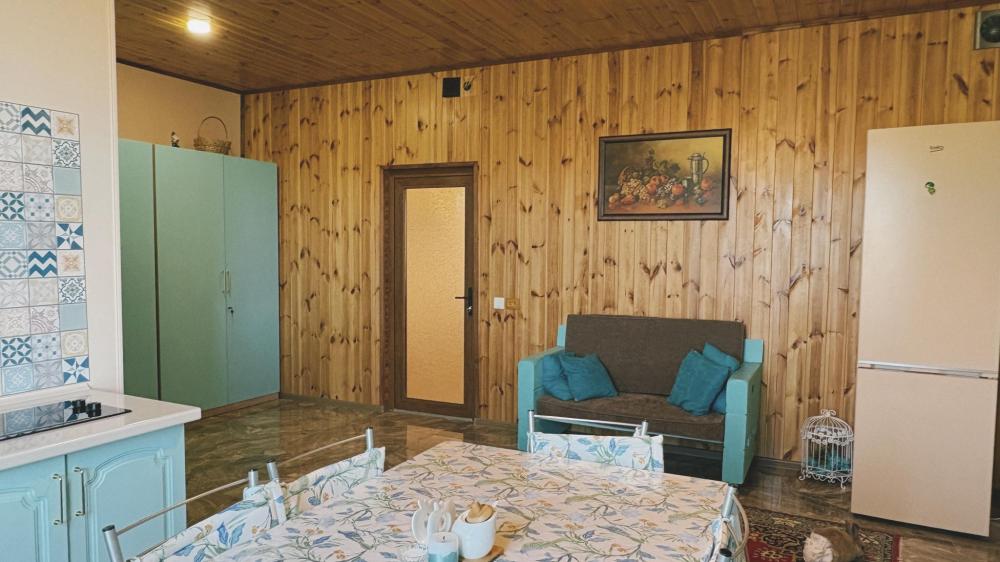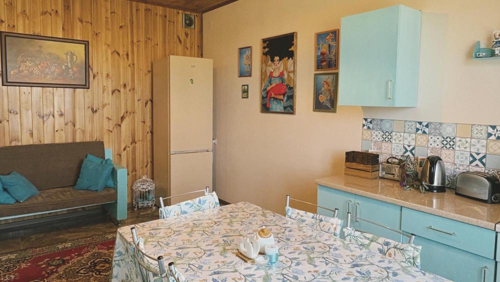 Коттедж воплощает в себе очарование деревенской жизни, сохраняя аутентичный этно-стиль и тепло домашнего очага. Планировка дома: главная спальня с большой двуспальной кроватью; гостиная зона с массивным столом на 8 персон; кухня-чулан с винтажным деревенским дизайном и современной техникой; ванная комната со всеми необходимыми принадлежностями . Удобства и оснащение: современная техника, высокоскоростной Wi-Fi для связи с миром, комплект банных принадлежностей, полностью оборудованная кухня.