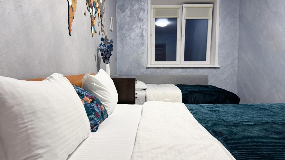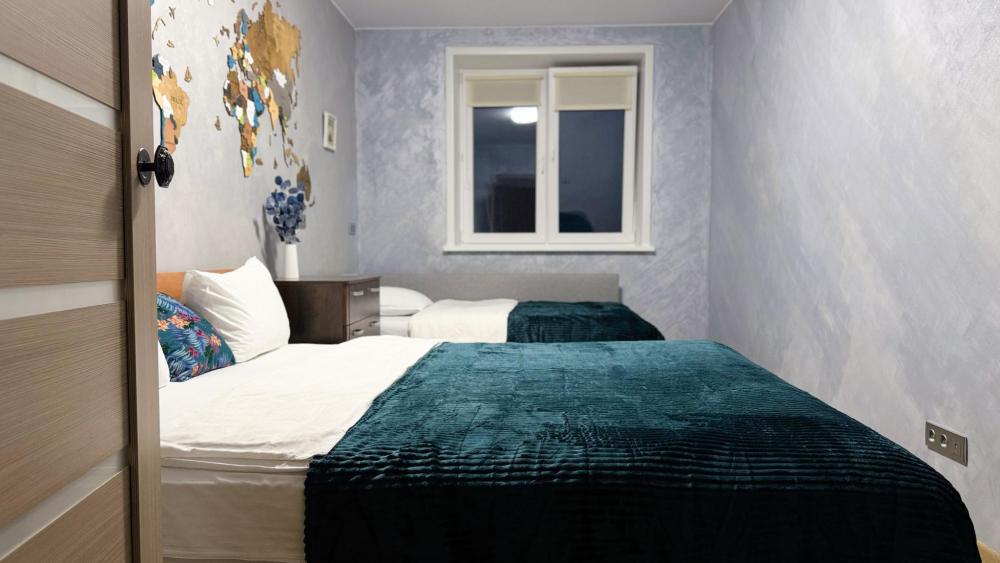 Квартира просторная, очень теплая. Замечательный вид из окна., Комфортные спальные места: двухспальная кровать 180/200, евродвухспальный диван 330/200, односпальная тахта размером 120/200. Большая кухня, в которой Вы найдете все для приготовления и према пищи. При проживании с питомцем страховой депозит будет увеличен. Добро пожаловать!