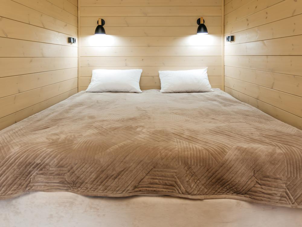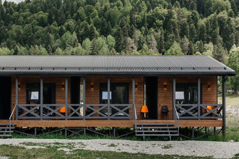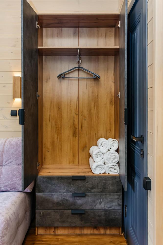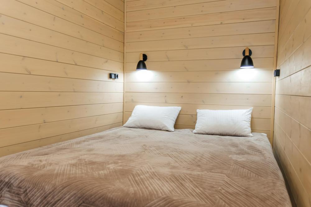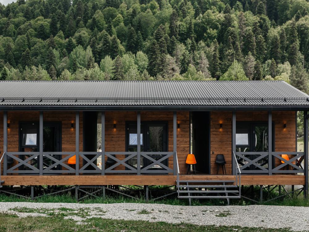 4 местный домик с отдельной спальней. Домики оснащены всем необходимым для комфортного проживания. В распоряжении гостей своя кухня, большая двуспальная кровать с ортопедическим матрасом, диван-кровать, кухонная зона, санузел с душем и веранда. Спутниковое ТВ, wi fi. В домиках есть холодильник, плита, столовые приборы и посуда. В санузлах подогрев пола и душевой зоны, фен, гигиенический душ. С территории открывается необыкновенный вид на горы Смирнова, скалы Горячева (3138 м), рядом проходит множество пеших туристических маршрутов разной протяженности и сложности.Кол-во гостей до 4 человек площадь домика 35 кв.м
