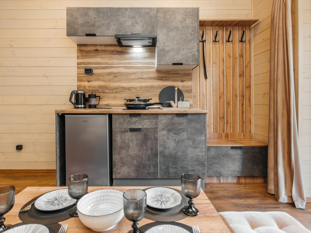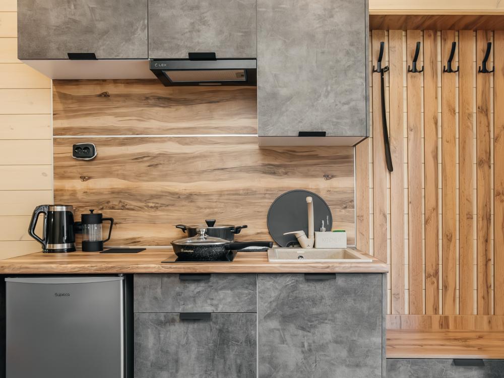 4 местный домик студия. Уютный домик-студия оснащен всем необходимым для комфортного проживания. В распоряжении гостей своя кухня, большая двуспальная кровать с ортопедическим матрасом, диван-кровать, кухонная зона, санузел с душем и веранда. Wi fi. В домиках есть холодильник, плита, столовые приборы и посуда. В санузлах подогрев пола и душевой зоны, фен, гигиенический душ. На территории есть мангальные зоны, просторная парковка, кедровая баня на дровах. Кол-во гостей до 4 человек. Площадь домика 25 кв.м. Из окон открывается великолепный вид на гору Смирнова и Скалу Горячева.