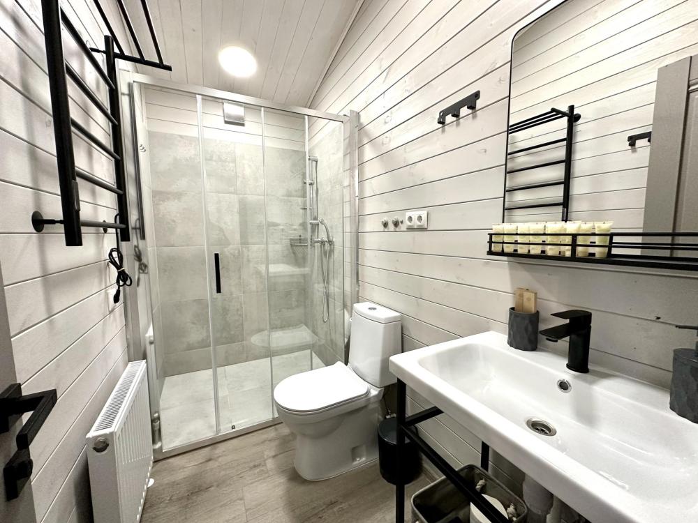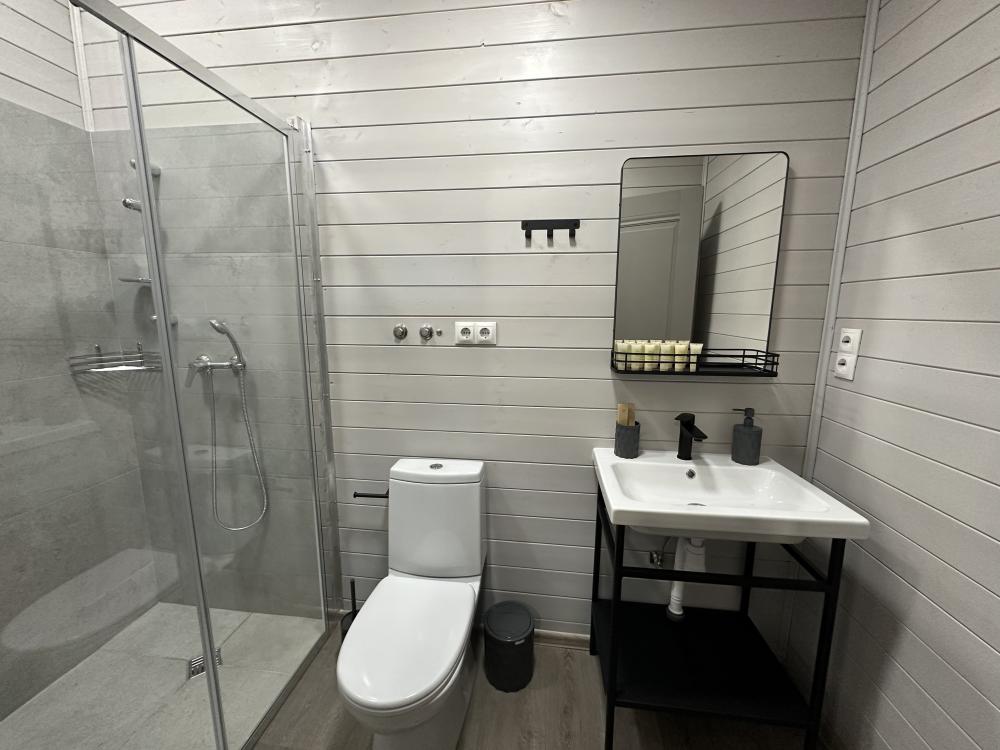 Уютный дом 32м2. Подходит для размещения до 4х человек. В доме есть все необходимое для комфортного проживания: двуспальная кровать с ортопедическим матрасом, раскладной диван, постельное белье, полотенца, колонка Алиса, оборудованная кухня: холодильник, микроволновая печь, электроплита, чайник, посуда для приготовления и сервировки, санузел с большой душевой кабиной, бойлером, фен, косметические принадлежности и средства личной гигиены, терраса, мангальная зона, шампуры, решетка для мангала.
