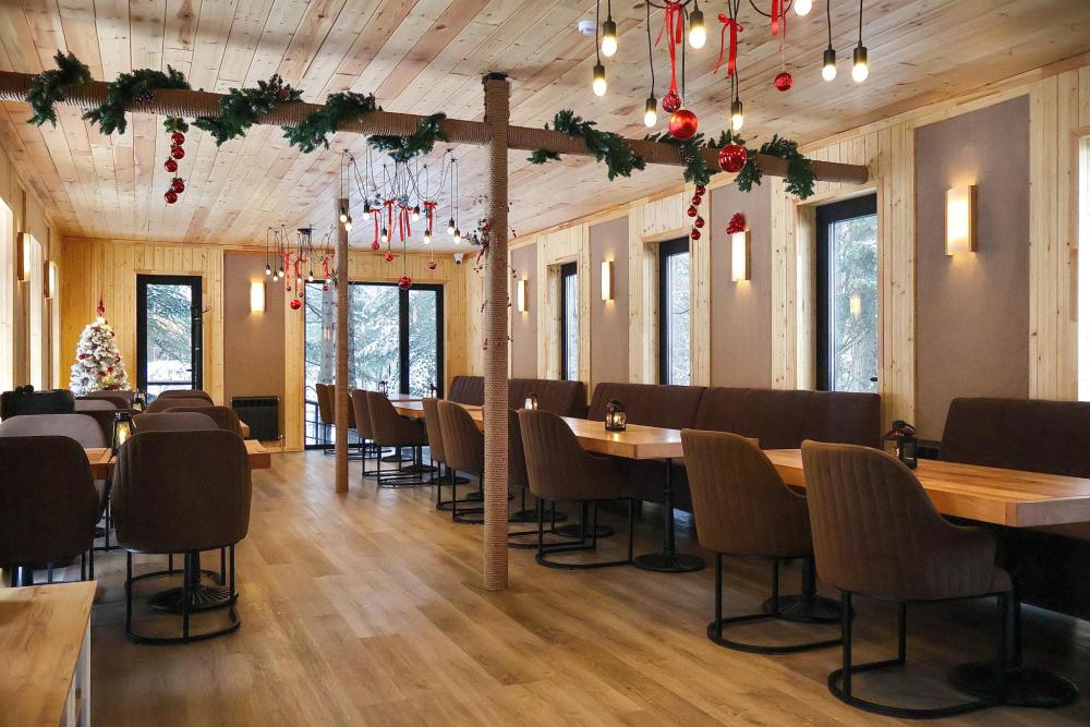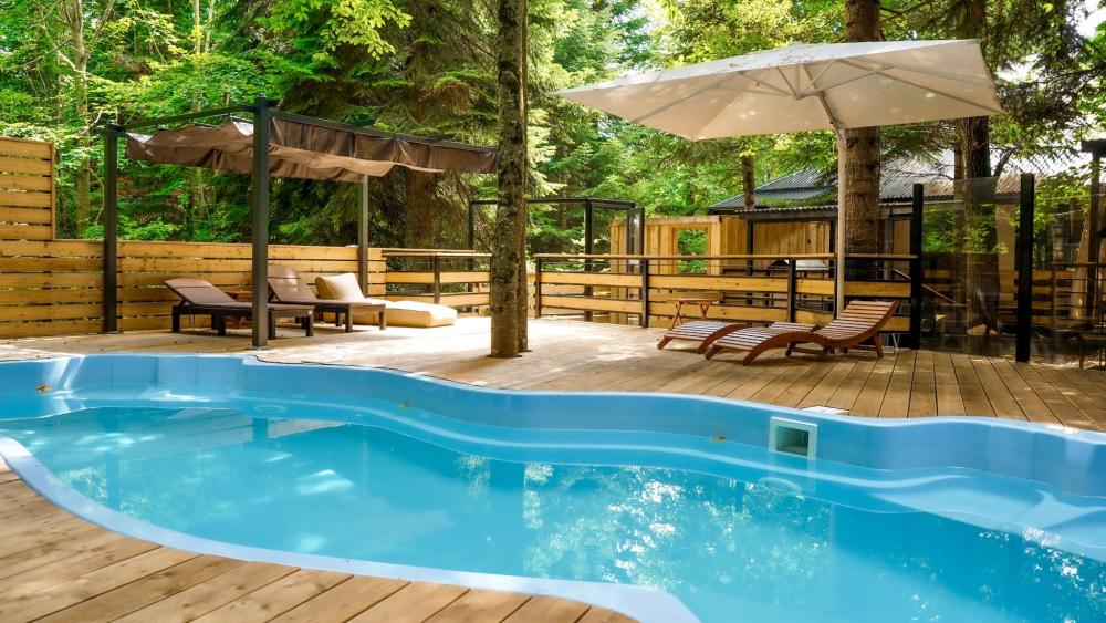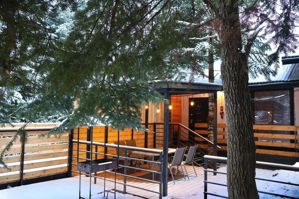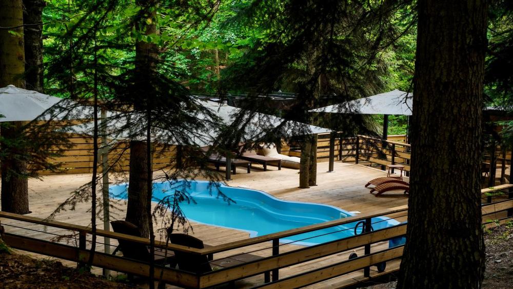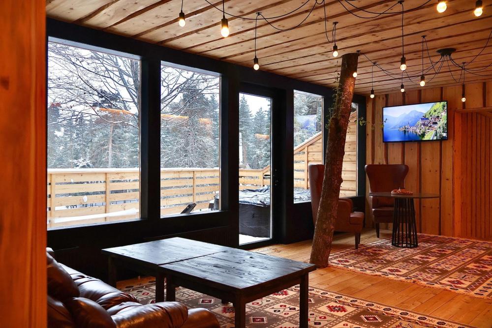Домик с прекрасным видом на лес не оставит равнодушным даже самого изысканного любителя естественных природных пейзажей. Стоит заглянуть под завесу лесной пелены, и перед глазами открываются сказочные просторы, необыкновенно завораживающие картины живого леса. Домик рассчитан на проживание максимум 4 гостей: двуспальная кровать, односпальная кровать, а так же диван. Кухня в полностью оборудована для приготовления пищи, включая индукционную плиту, посуду, холодильник и микроволновую печь. В коттеджах также есть ванная комната, балкон, веранда.