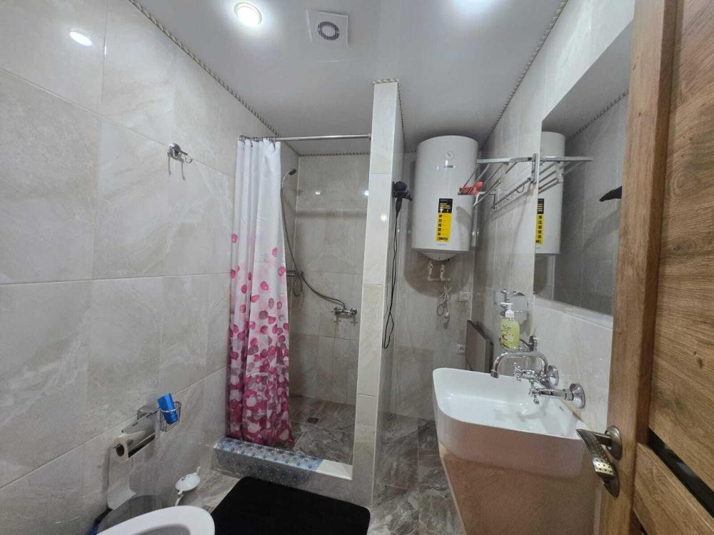 Дом отдельно стоящий площадью 60 кв.м. разделен на две комнаты. В коридоре размещен совмещенный санузел площ 5 кв . Комната справа площ 23 кв.м. вмещает 3 гостя и один гость дополнительно . Имеется двуспальная кровать, полутерная кровать и крвесло кровать,.стол обеденный стулья . Комната слево площадь 16 кв.м. на двоих , две полутерные кровати , телевизор . WI-FI. На веранде места для отдыха