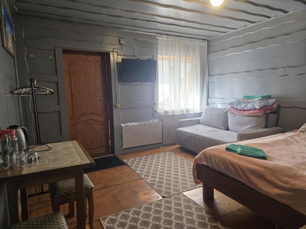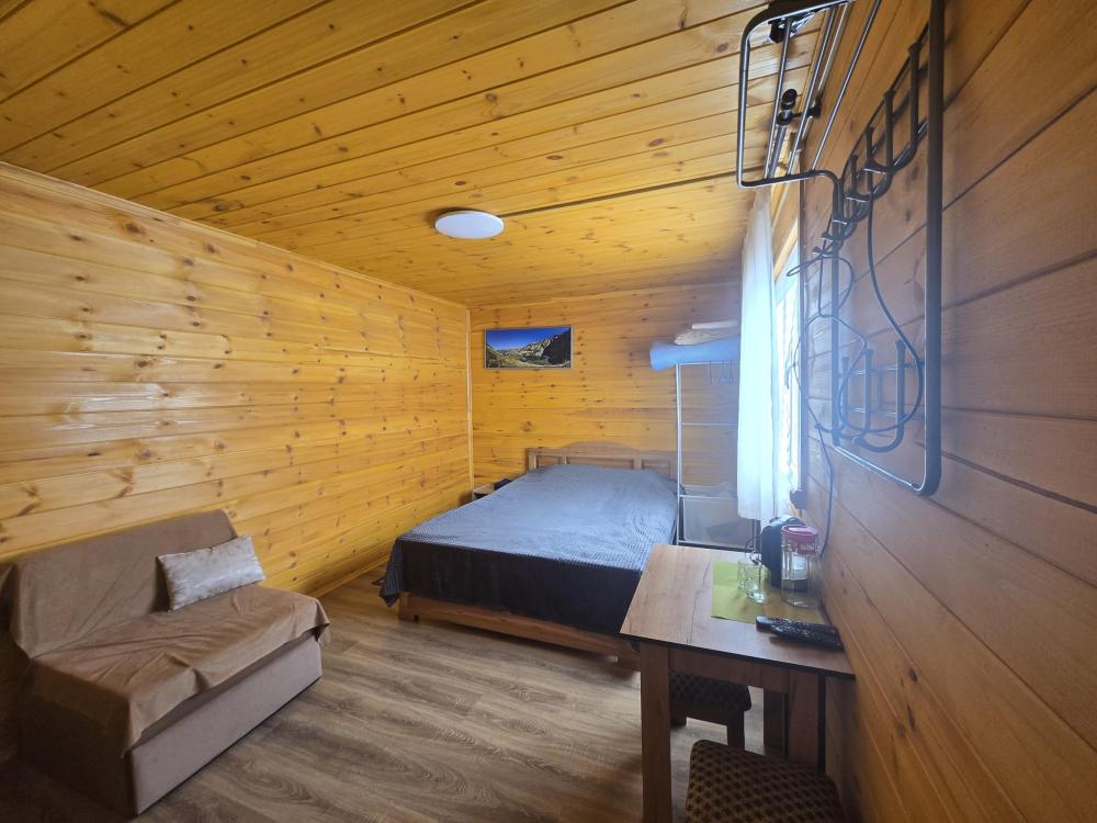Стандартный номер площ 20 кв.м. вмещает 3 гостя . Имеется двуспальная кровать, кресло кровать.стол обеденный стулья . Санузел совмещенный с душевой кабиной. WI-FI